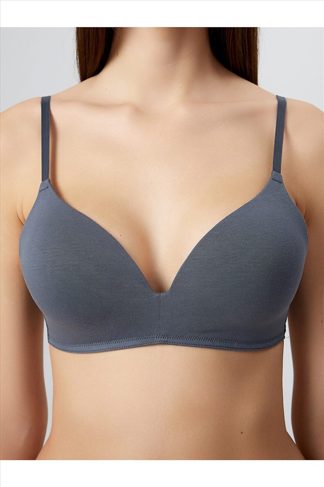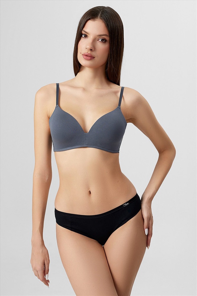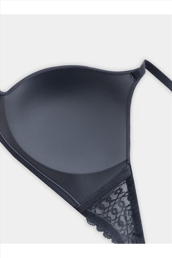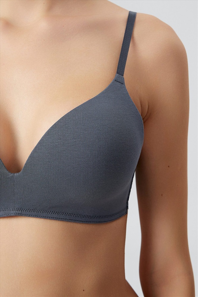 Бюстгальтер t-shirt, с формованными чашками (HN-32), без каркасов. Чашки из кулирного полотна с подформовкой. По линии декольте и по пройме чашки обтачаны полотном. В боковых швах пластины. Бочки отрезные, из эластичного кружева. Верхний срез бочка обработан эл тесьмой 10 мм м (жесткая без зуба WTWE1-10, девсел 487W) в один прием. По нижнему срезу бочка настрочена эл тесьма 10 мм (жесткая без зуба WTWE-10, девсел 487W) на 4-укольном зигзаге. Бретель 10 мм и 15 мм (SWE2, девсел 1879W) по размерам с регулировкой по длине. Металлические регулятор и крючок-застежка 10 мм и 15 мм по размерам. Застежка двойная 28 мм и 38 мм по размерам.