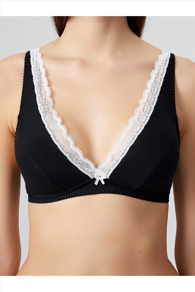 Повседневный хлопковый бюстгальтер. Благодаря тонким дубляжным чашкам и отсутствию каркасов практически не ощущается на теле. Узкое эластичное кружево на срезе декольте делает модель очень женственной.