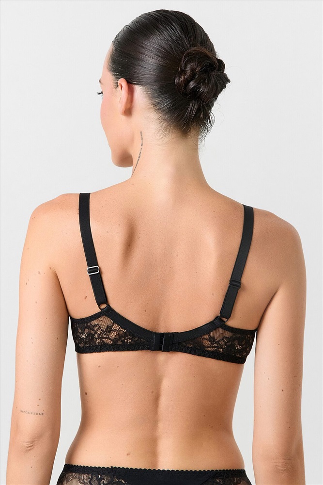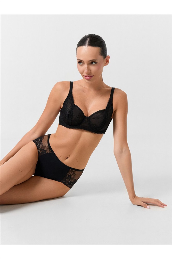 Бюстгальтер макси из эластичного кружева, каркас 47 тип, двойное диагональное членение. Чашки из кружева на подкладке из сетки эластичной, с вытачкой . Верхний срез чашки обтачан подкладкой с эластичной тесьмой 6 мм внутри (Wt4-6, девсел 13460W). Ластовица и деталь стана на подкладке из монокапрона р441. В бочках пластины. Бочки из кружева. Верхний срез бочка и проймы обработан эластичной тесьмой 8 мм (жесткая б/зуба WTWE1-8, девсел 487W) и 10 (жесткая б/зуба WTWE1-10, девсел 10W-487) в один прием. По нижнему срезу стана эластичная тесьма 10мм (жесткая б/зуба WTWE1-10, девсел 10W-487) и 12 мм (жесткая б/зуба WTWE1-12, девсел 12W-487) по размерам настрочена на 4-укольном зигзаге. Бретель по размерам 15 мм и 20 мм (SWE3, девсел 1979W) с регулировкой по длине. Кольца-регуляторы по размерам 15 и 20 мм. Застежка двойная 28мм и 38мм.