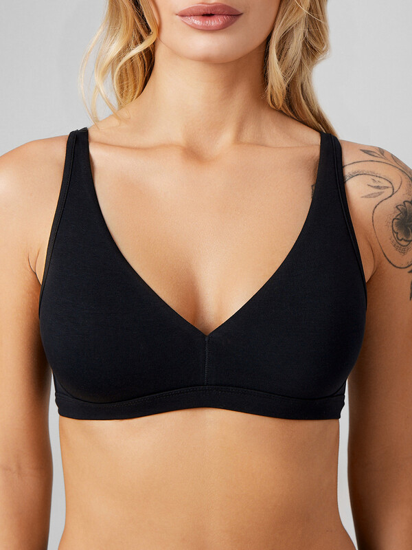 Комфортный бюстгальтер с мягкими чашками без косточек. Верхний срез обработан жилкой. Нижняя деталь пояса – с эластичной тесьмой внутри. Длина бретелей может быть отрегулирована. Бюстье практически не ощущается на теле. Рекомендуем!