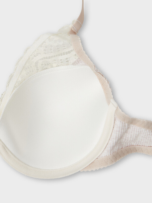 Бюстгальтер без стана, на каркасах (2 тип). Жесткие формованные чашки СN-53.14C. Ластовица выполнена из рибаны, подкладка из монокапрона. Чашки и бочки из рибаны. Верхний срез чашки декорирован кружевом 60 мм. По внешнему краю кружева по изнаночной стороне настрочена эластичная тесьма 6 мм (жилка, WT4-6). По пройме и верхнему срезу стана настрочена жесткая эластичная тесьма 10 мм (08/10) с зубом в один прием. Нижний срез обработан жесткой эластичной тесьмой 12 мм (10/12) с зубом в один прием. Бретель 10мм и 15 мм (по размерам) с регулировкой. Кольца и регуляторы 10 и 15 мм (по размерам). Застежка на крючки и петли двойная двухрядная 28 мм и 38 мм (по размерам).