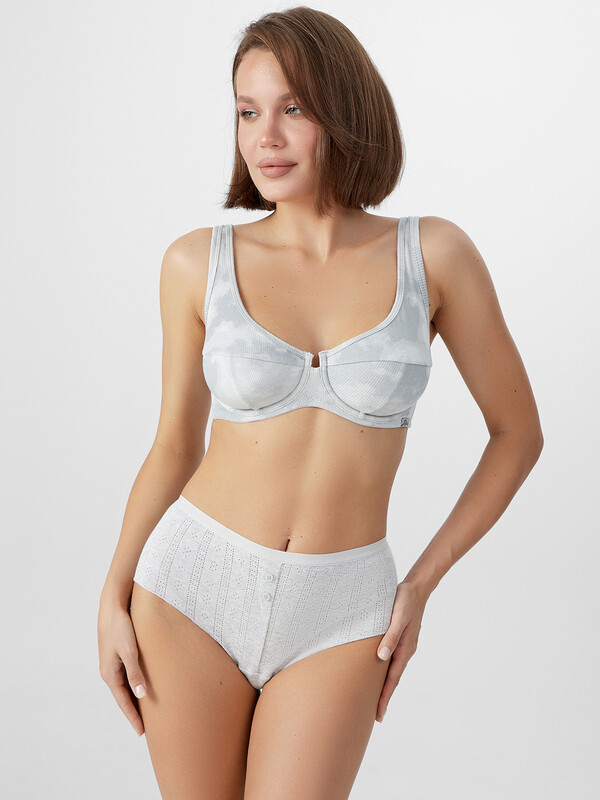 В бочках пластины. Нижний срез обработан эластичной тесьмой в два приема. На участке верхнего среза бочка настрочена бретельная тесьма (по размерам). Бретель по размерам с регулировкой по длине. Кольца-регуляторы по размерам. Застежка по размерам двойная. 94% хлопок; 4% эластан; 2% полиамид Комментарии к товару