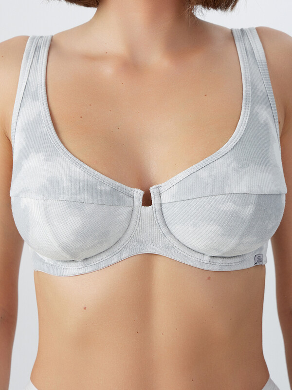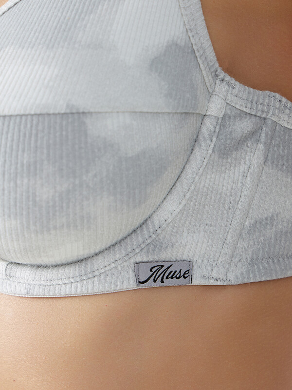 Бюстгальтер макси из рибаны на подкладке из трикотажного кулирного полотна, каркас 50 тип. Чашка с тройным членением, с уступом возле ластовицы, удлиненная и переходящая в бретель. Верхний срез чашки окантован бейкой из рибаны с эластичной тесьмой внутри. Боковой срез чашки и верхний срез бочка окантованы широкой бейкой из рибаны с эл тесьмой внутри. Ластовица и часть стана на подкладке из монокапрона.