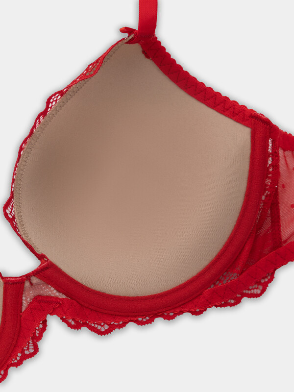 Очаровательный бюстгальтер push-up с формованными чашками из эластичного кружева и сетки – идеальный выбор для создания привлекательного образа. Чашка с вытачкой из эластичного кружева обеспечивает отличную поддержку и придает форму. Боковые детали из сеточки добавляют легкость и воздушность модели. Проймы и верхний срез боковых деталей обработаны эластичной тесьмой, что гарантирует комфорт и надежную фиксацию. А регулируемые бретели и застежка позволяют настроить бюстгальтер под ваши индивидуальные предпочтения. Декоративные бантики, расположенные по центру между чашками и у оснований бретелей, добавляют изысканности и нежности этой модели. Прекрасный выбор для тех, кто ценит стиль и комфорт!