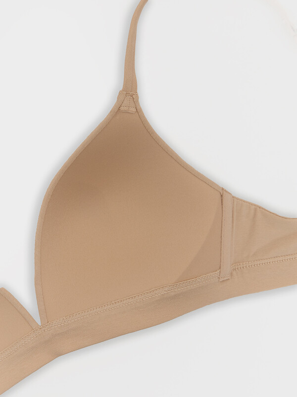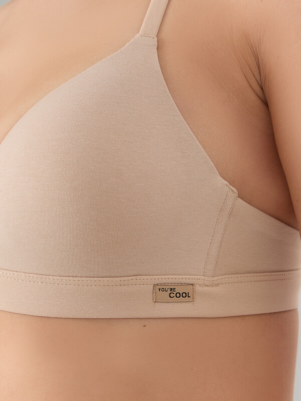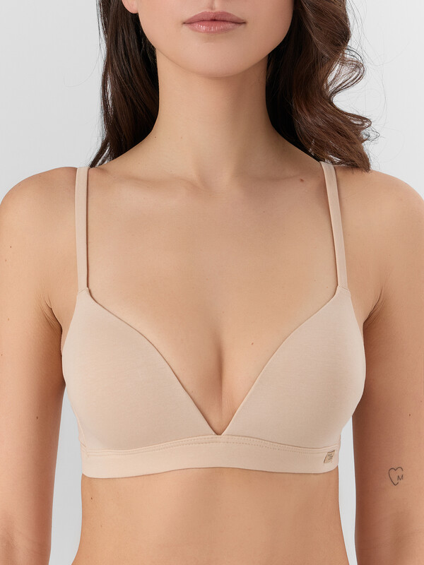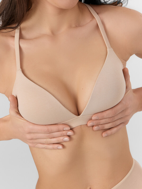 Бюстгальтер женский изготовлен из трикотажного кулирного полотна, с твердыми формоваными чашками, без каркасов.
