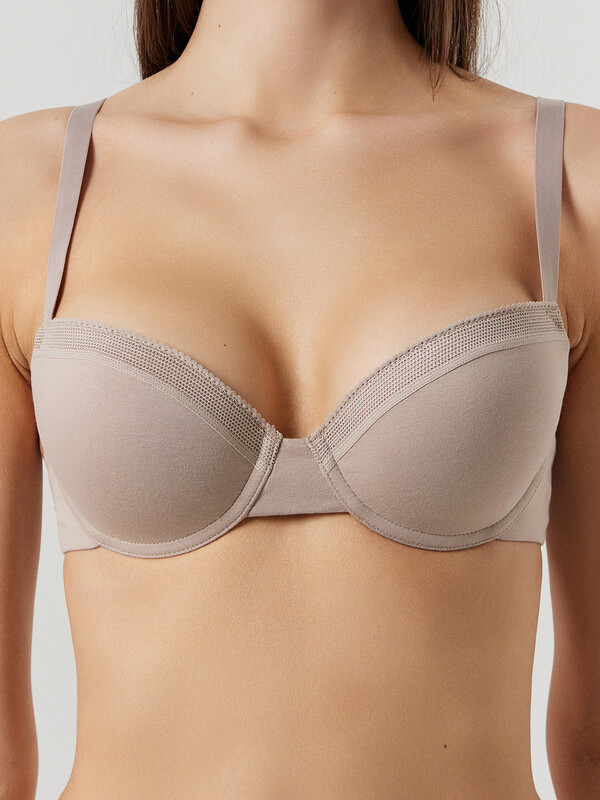 Бюстгальтер женский макси, на каркасах 2 типа, с формованной чашкой СN-52.16m. Чашка с подформовкой выполнена из кулирного полотна, с отделкой декоративной эластичной тесьмой 19 мм (декоративная Dt13-19, девсел 222К) по краю на просвет.
