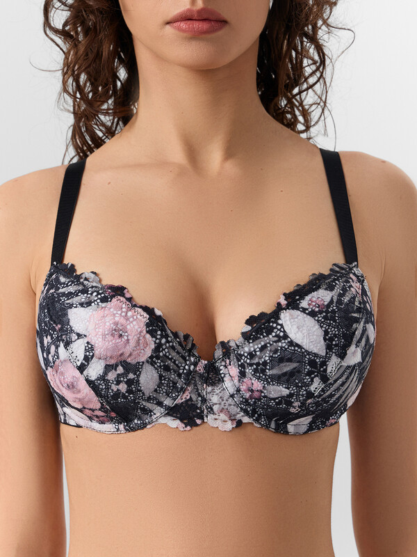 Бюстгальтер макси с формованными чашками (CN-43.16м) без стана, на каркасах 16 типа. Чашка выполнена из эластичного кружева с диагональным рельефом. Ластовица выполнена из эластичного кружева на подкладке из монокапрона. Бочки выполнены из кружева.