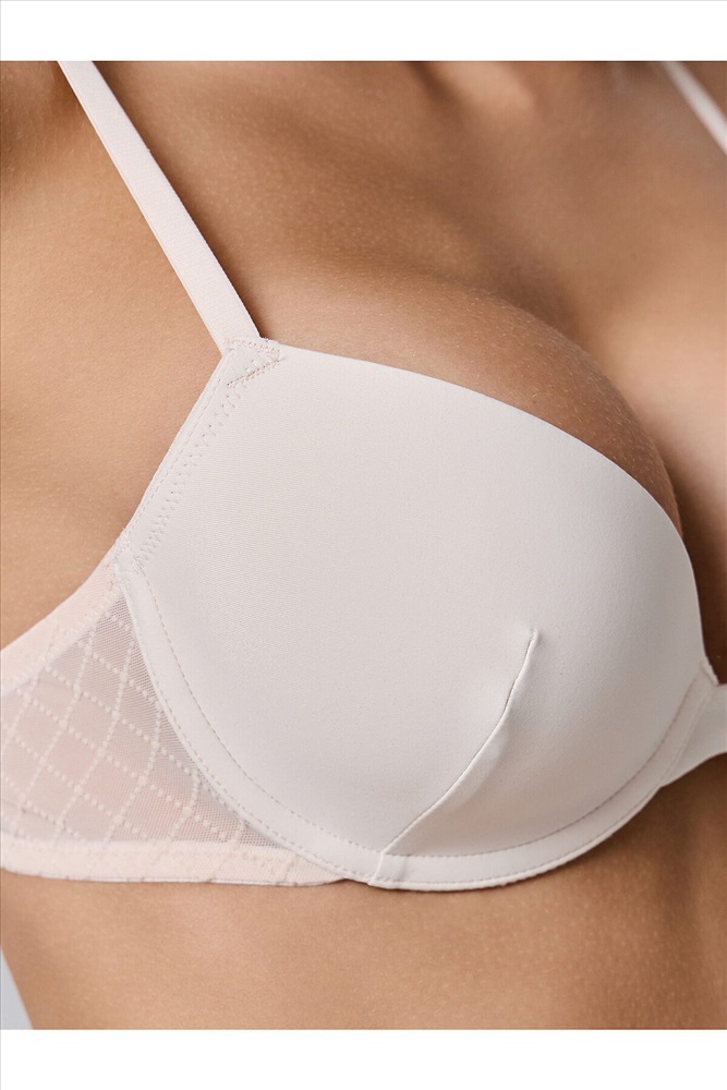 ID товара: 1238723 Состав: 71% полиамид; 17% полиэстер; 12% эластан Сезон: Весна/Лето Рукав: короткие Особенности белья: Регулировка бретелей по длине Уход: Деликатная стирка при 30 градусах Бюстгальтер: Под футболку Фактура материала: Микрофибра Чашка: Формованная без пуш-ап Страна бренда: Беларусь Страна производства: Китай Женский бюстгальтер на каркасах с формованными чашками — это удачное сочетание комфорта, поддержки и элегантного дизайна. Чашки выполнены из гладкой микрофибры, приятной на ощупь, с вытачкой, которая обеспечивает анатомически правильную посадку и подчеркивает естественную форму груди. Каркасная конструкция надежно поддерживает грудь, делая модель подходящей для ежедневной носки. Боковые детали изготовлены из эластичной сетки, которая обеспечивает дополнительную вентиляцию и легкость. Бретели регулируются по длине с помощью металлических колец-регуляторов, позволяя адаптировать бюстгальтер под индивидуальные параметры. Застежка на спинке — двойная, на крючках, обеспечивает удобство и надежную фиксацию. Такая модель отличается лаконичным стилем и универсальностью, легко сочетается с трусиками из нашей коллекции, создавая минималистичные комплекты на каждый день. Комментарии к товару