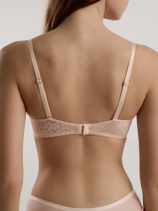 Бельё серии Sunny Rain из эластичного кружевного полотна с абстрактным жаккардовым рисунком, деликатным блеском и утончёнными деталями создаёт гармоничное сочетание комфорта и элегантности. Благодаря формованной чашке с push-up эффектом бюстгальтер придаст дополнительный объем груди и подчеркнёт изящную линию декольте.
