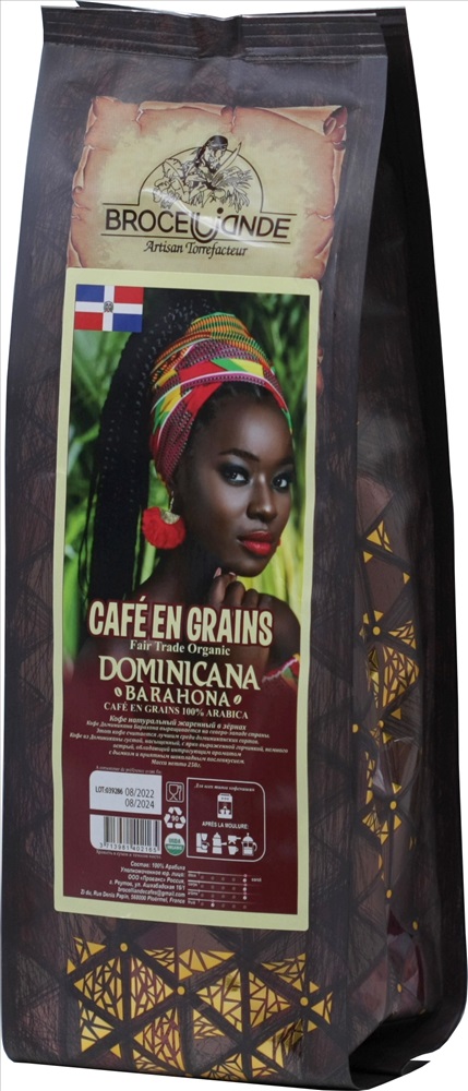 Кофе натуральный в зернах. Состав: Арабика Barahona.Кофейные плантации, где растут зерна арабики Барахона расположены на северозападе Доминиканы. Среди всех доминиканских сортов арабика Барахона считается самой лучшей. Кофейный напиток получается густым и плотным, вкус интенсивный с ярко выраженной горчинкой и легкой остротой, аромат и послевкусие будут отличаться древесными, дымными и шоколадными нотами.Обжарка зерен — средняя.