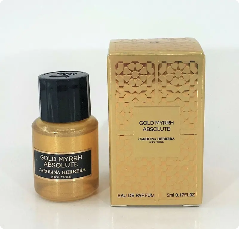 Gold Myrrh Absolute — стильный, красивый и гармоничный фужерный унисекс-парфюм, пополнивший в 2021 году парфюмерную коллекцию американского модного бренда Carolina Herrera. Обладая ярким, чистым и безукоризненным звучанием, аромат идеально вписывается в образ современного человека, создавая ощущение чистоты, свежести, комфорта и гармонии с окружающим миром. Ароматическая композиция встречает сладким шелковисто-пряным ароматом бессмертника с пряными искорками черного перца. В сердце парфюма бархатистый запах какао сочетается с нежной сладостью лакрицы. Тогда как финальный аккорд парфюма Carolina Herrera Gold Myrrh Absolute неожиданно отзывается почти мистическими дымно-ароматическими тонами мирры и нежнейшей сладостью ванили. Комментарии к товару