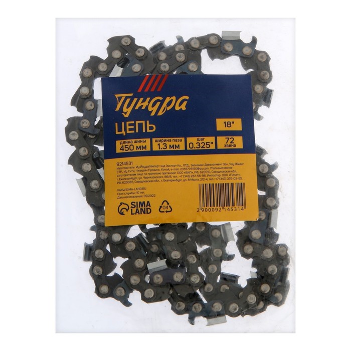 Производитель: ТУНДРА Габариты: 14 x 8 x 1,5 Страна: Китай В боксе: 100 шт Состав: Металл Материалы: металл Фасовка: по 1 шт Индивидуальная упаковка: Пакет Сертификат: Не подлежит сертификации Ширина паза, мм: 1,3 Количество звеньев: 72 Шаг цепи: 0.325"