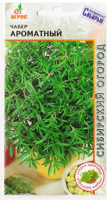 Однолетнее, ветвистое растение. Свежие и сушеные листья чабера, имеющие сильный и приятный запах, используют при мариновании и засолке овощей, а также как пряную приправу к разным блюдам. Настой из листьев чабера применяют при желудочно-кишечных заболеваниях. Особенности выращивания: Убирают в начале цветения, срезая растения.