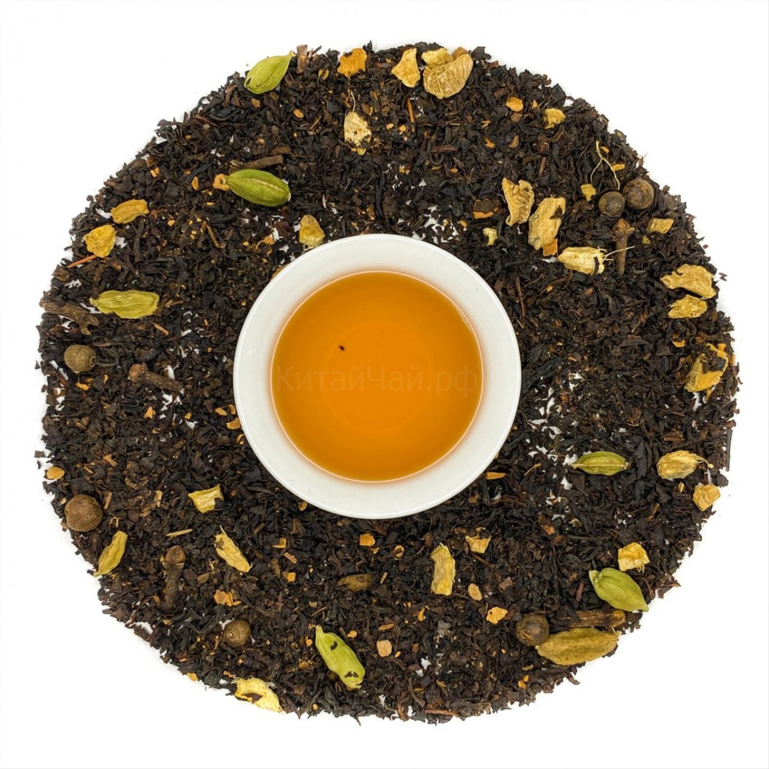 Чай черный, гвоздика, корица, имбирь, кардамон, перец душистый, мускатный орех. Без ароматизаторов.