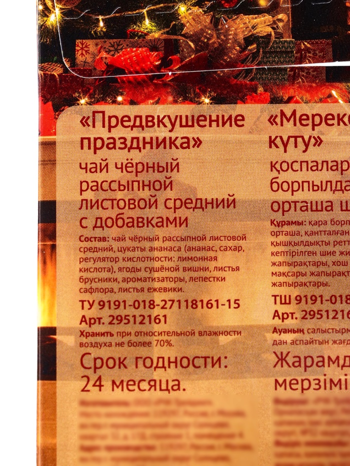 - Новогодний дизайн упаковки соответствует праздничной тематике.