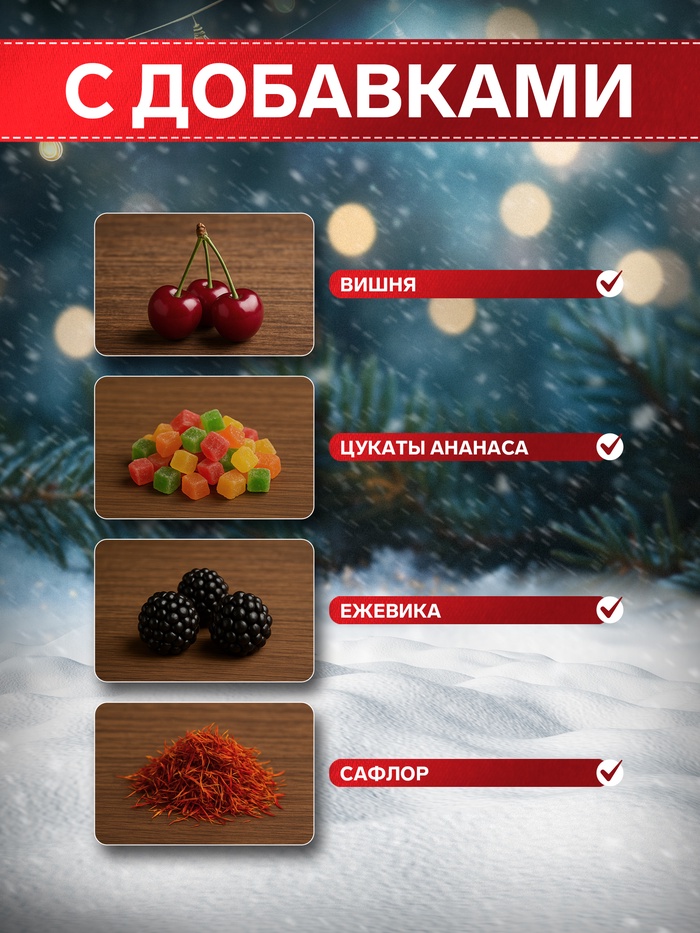 Добавки чая: Ананас, Вишня, Сафлор, Ежевика, Цукаты