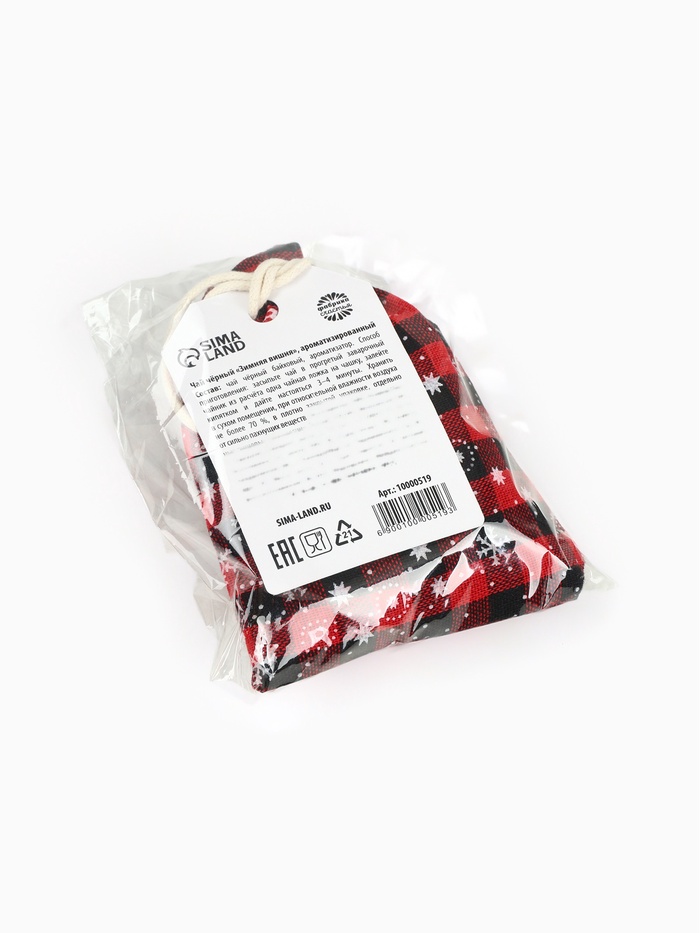Габариты: 9 x 12 x 4 Страна: Россия В боксе: 250 шт Состав: См. на упаковке Материалы: см. на упаковке Фасовка: по 1 шт Индивидуальная упаковка: Без упаковки Сертификат: ЕАС Вес нетто, г: 30 Вид чая: Чёрный Тематика: Новогодняя Символ года: Нет Тематика праздника: Рождество, Новый год Вкус: Апельсин, Коньяк Подарочный чай: Да Добавки чая: Апельсин Вид упаковки: В холщовом мешке Фиксированная цена: Да Чай чёрный «Зимняя вишня», ароматизированныйСостав: чай чёрный байховый, ароматизатор. Комментарии к товару