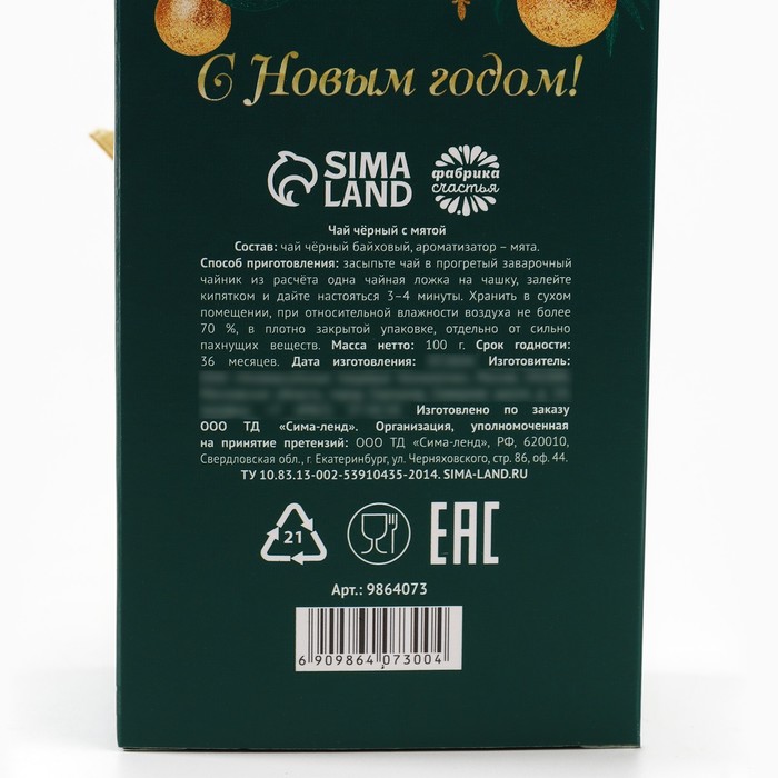 Состав: чай чёрный байховый, ароматизатор: мята.