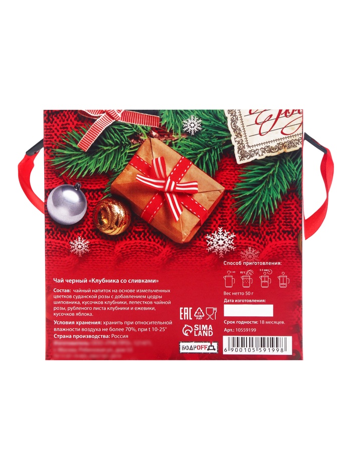 Габариты: 11 x 6 x 11 Страна: Россия В боксе: 105 шт Состав: См. на упаковке Материалы: см. на упаковке Фасовка: по 1 шт Индивидуальная упаковка: Термоусадочная пленка Сертификат: ЕАС Набор: Нет Вес нетто, г: 50 Фасовка: Весовой Вид чая: Чёрный Символ года: Нет Тематика праздника: Новый год Вкус: Клубника со сливками Подарочный чай: Да Добавки чая: Шиповник, Клубника, Яблоко, Ежевика, Ассорти, Роза, Чайная роза, Лист клубники Вид упаковки: В картонной коробке Фиксированная цена: Да Чай "Письмо" — это уникальная композиция, которая объединяет в себе великолепный вкус. Упаковка весом 50 г содержит тщательно отобранные чайные листья, дополненные различных ароматными ингредиентами, что придаёт напитку изысканность и неповторимость. Каждая чашка этого чая словно перенесёт вас в мир тёплых чувств и нежных воспоминаний. Его мягкий аромат и сбалансированный вкус делают его идеальным выбором как для утреннего пробуждения, так и для вечернего чаепития с друзьями или близкими. Чай "Письмо" прекрасно сочетается с десертами, печеньем и свежими фруктами, создавая гармоничное сочетание на вашем столе. Идеально упакованный, этот чай станет замечательным подарком для любителей чая и романтиков. Подарите себе и своим близким мгновения радости и уюта с чаем "Письмо" — напитком, который вдохновляет и дарит позитивные эмоции! Комментарии к товару