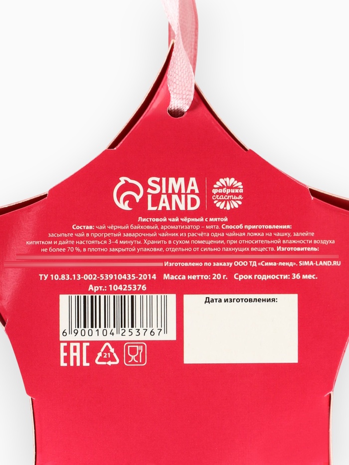 Состав: чай чёрный байховый, ароматизатор - мята.