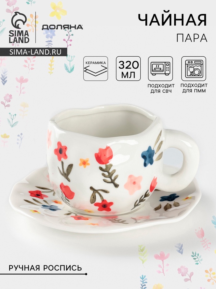 Откройте для себя красоту и изящество этой замечательной чайной парой, которая станет прекрасным дополнением для вашего чайного сервиза. Каждая чашка и блюдце украшены ручной росписью на цветочно-растительную тематику, создающей ощущение весеннего пробуждения и гармонии с природой.