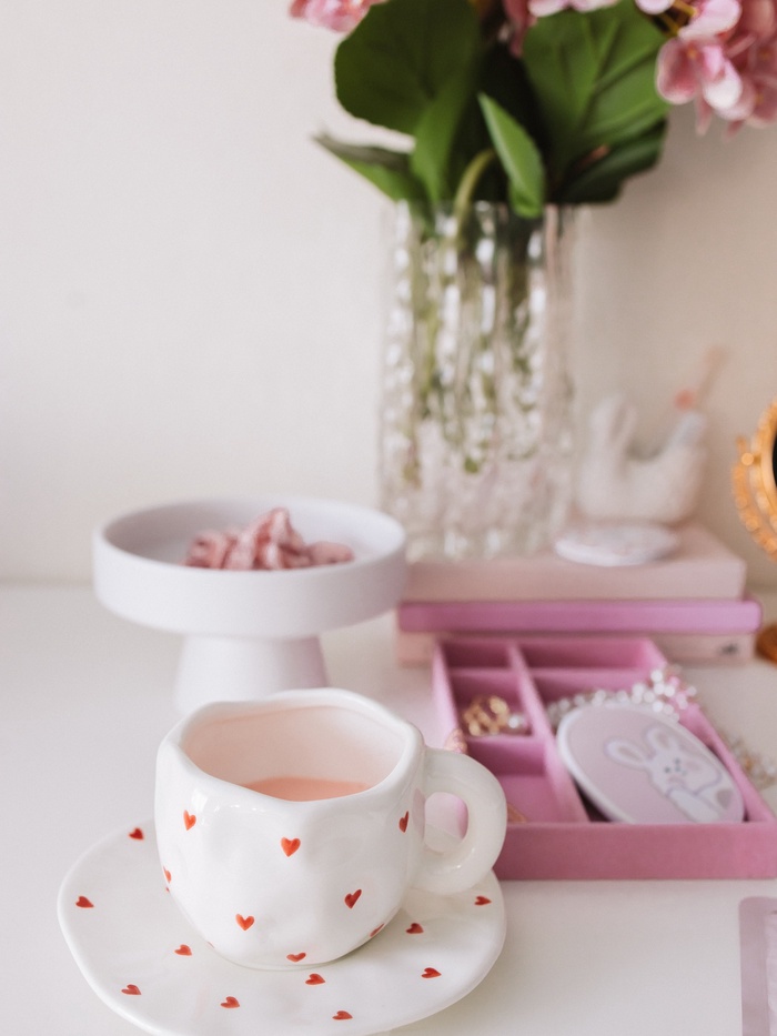 Переносите свою любовь к чаепитию на новый уровень с этой нежной чайной парой, которая своим дизайном и изысканностью вдохновляет на уютные вечера и романтические моменты. Каждая деталь, от чашки до блюдца, украшена ручной росписью с сердечками, что делает этот набор незаменимым для любителей красивой посуды.