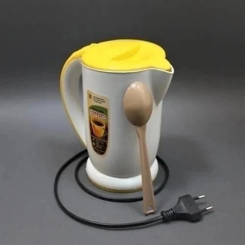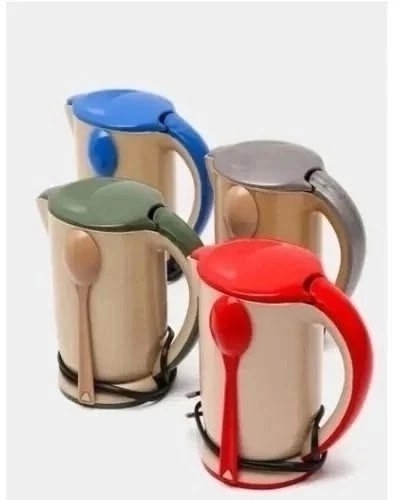 К ярким чайникам идет в подарок пластиковая большая ложка для заваривания и помешивания кофе сразу в чайничке. Работает от сети, имеет шнур 80 см.