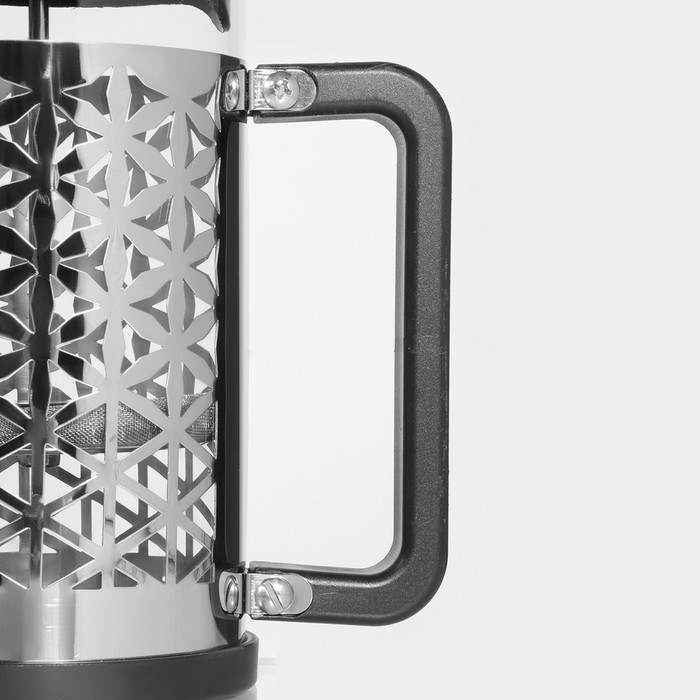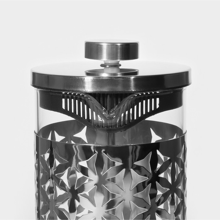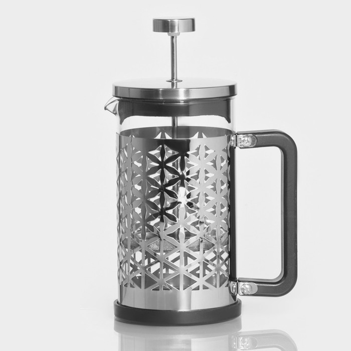 Стеклянный френч-пресс хорошо держит тепло, раскрывает вкус любимых напитков. Материал не вступает в реакцию с жидкостью, не не впитывает запахи и не окисляется. Металлический поршень и рельефный каркас из нержавеющей стали обеспечивают прочность изделия.Принцип работы френч-пресса прост: