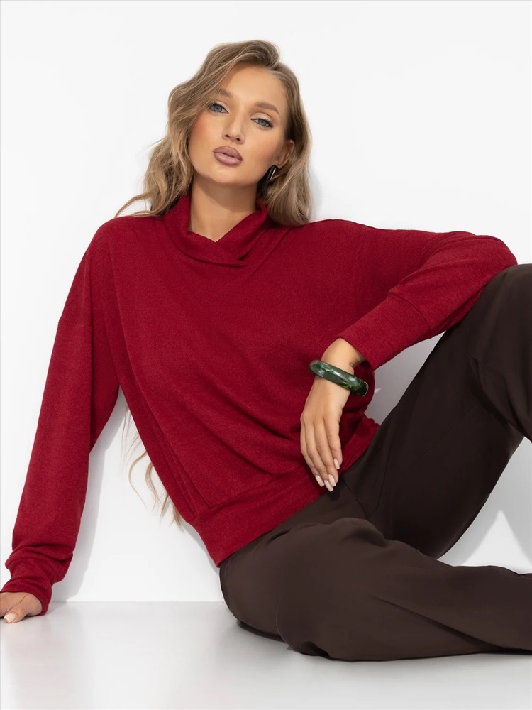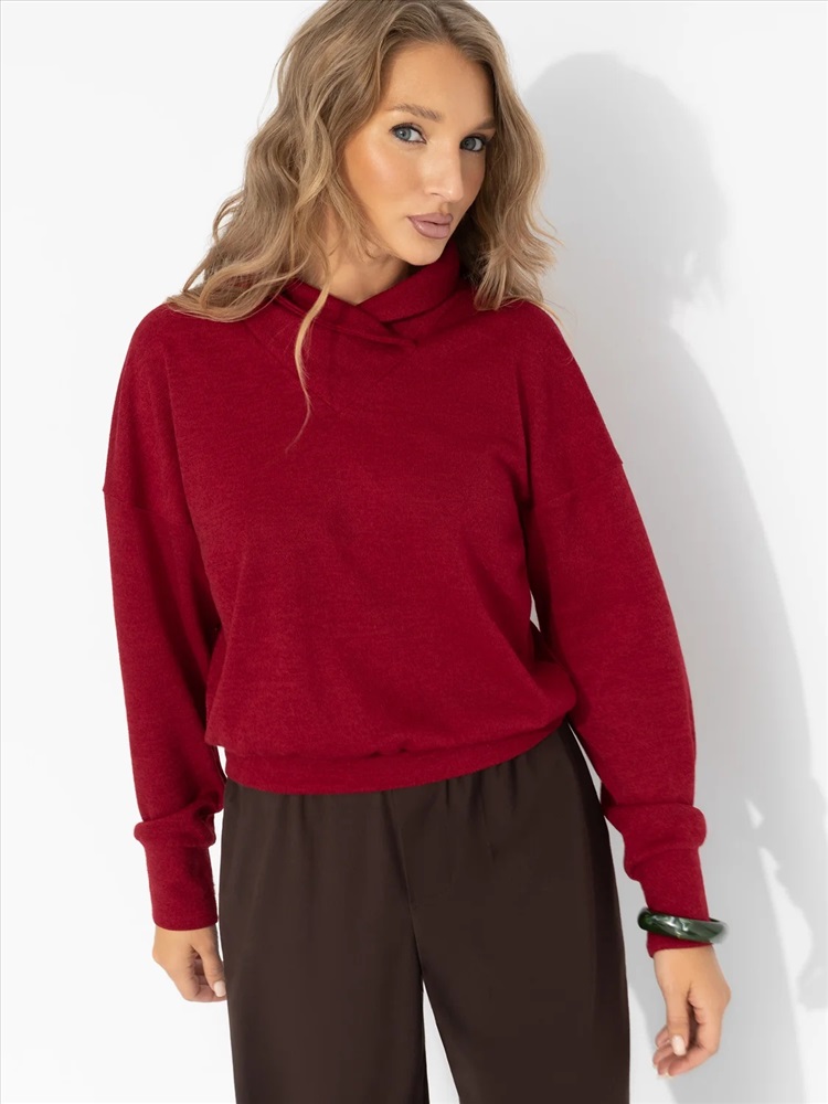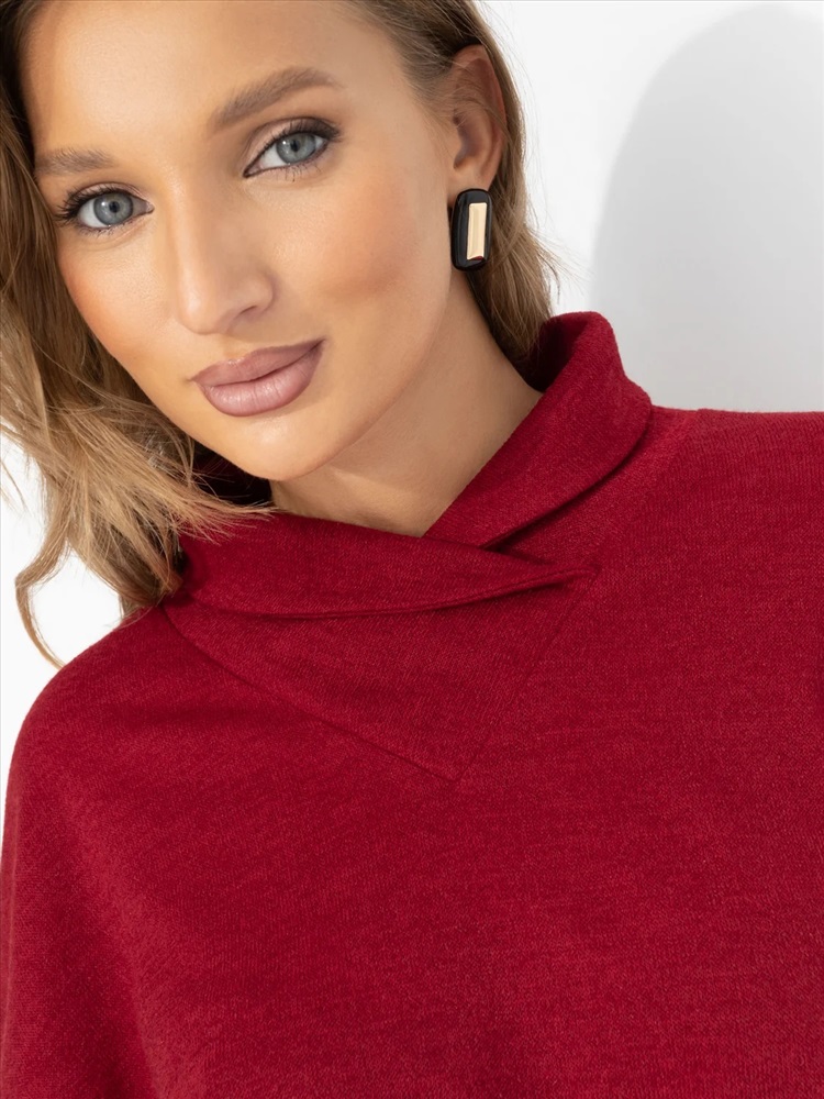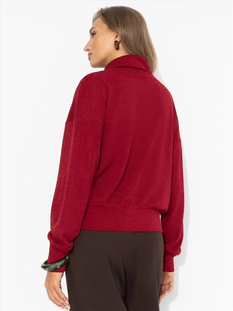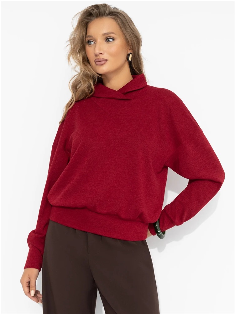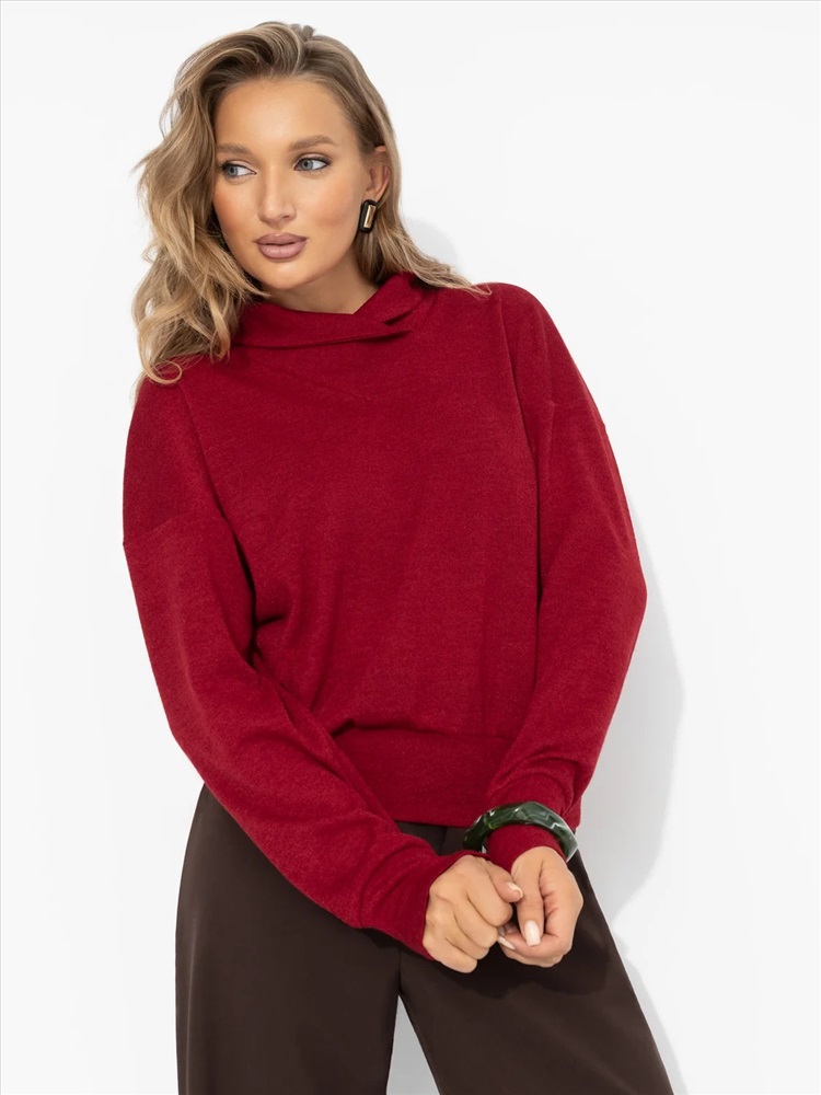 Глубокий красный цвет – импульс, который задаёт настроение всему дню. Мягкий трикотаж с ангорой окутывает теплом и дарит чувство уверенности. Действуй ярко! Джемпер из трикотажа с добавлением ангоры. Низ изделия оформлен нетугой резинкой.