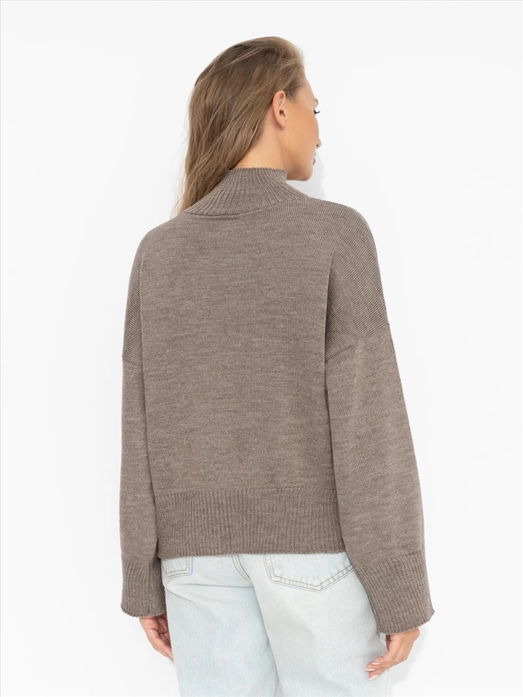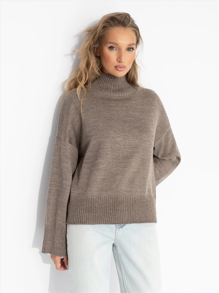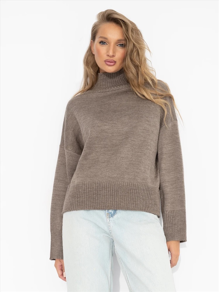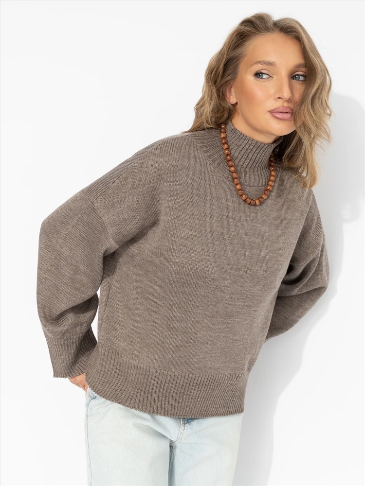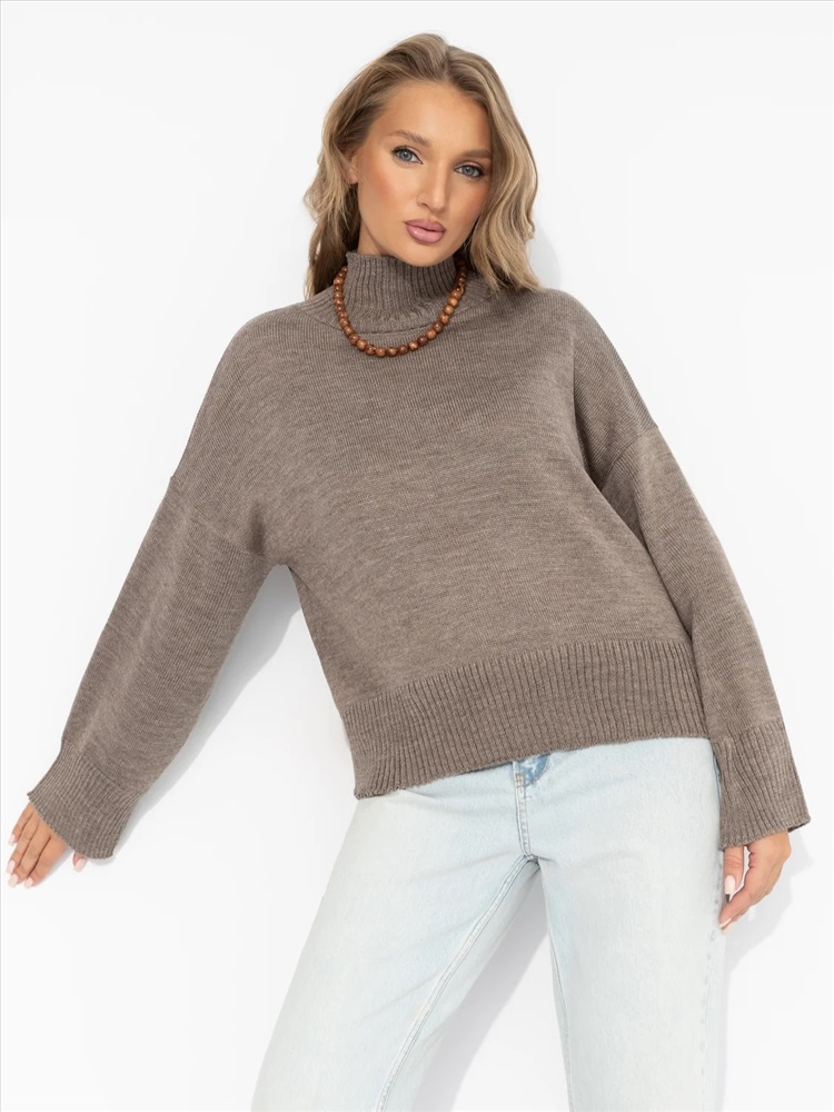 Новая глава твоего комфорта. Мягкий вязаный трикотаж обнимает, как тёплое утро с чашкой кофе. Лаконичный силуэт, благородный беж и свобода в каждом движении. Джемпер свободного кроя из мягкого вязаного трикотажа с добавлением шерсти. Воротник-стойка. Спущенная линия плеча создаёт расслабленный силуэт, подчёркивая непринуждённость образа.