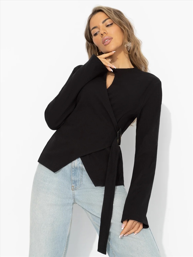 Вы знали, что самый смелый жест – это никому ничего не доказывать? Джемпер ЧАРУТТИ как раз про это. Глубокий черный цвет, намёк на трендовую асимметрию и тот самый вырез на нюансах, который замечают не сразу. Хлопковый интерлок мягко обрамляет тело и ощущается комфортно в течение дня. Лайкра добавляет эластичности, поэтому джемпер идеально садится по фигуре. Крой на запах создаёт динамику силуэта, а лаконичный чёрный легко вписывается в любой гардероб: с денимом, брюками, юбками. Минимум деталей – максимум характера.