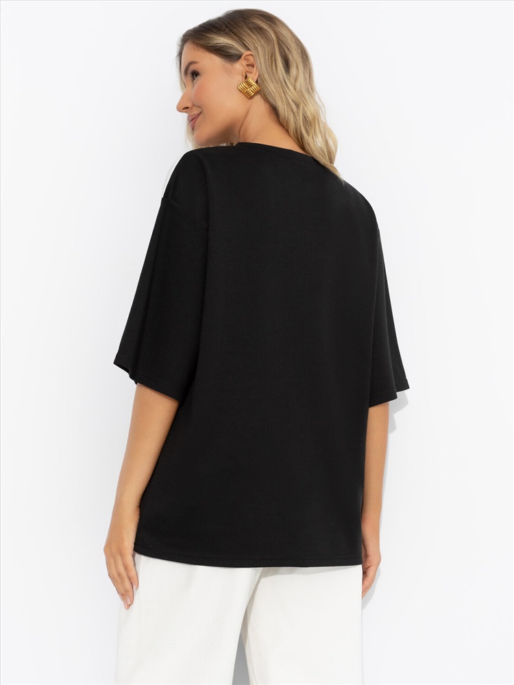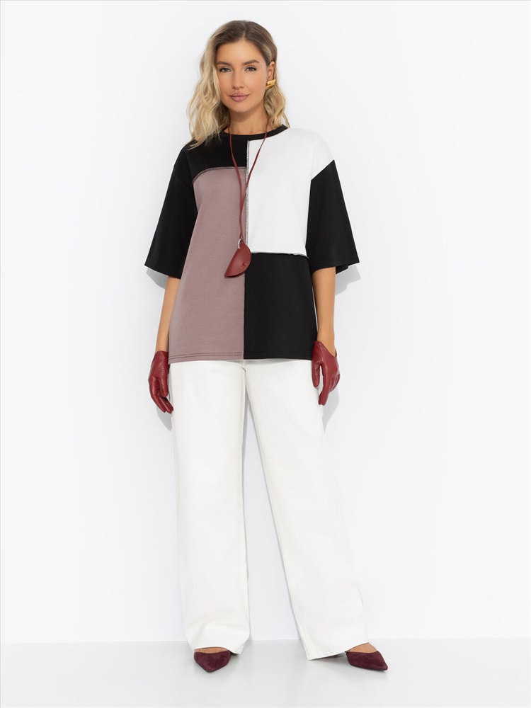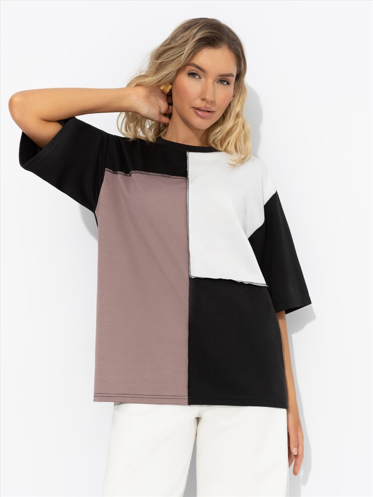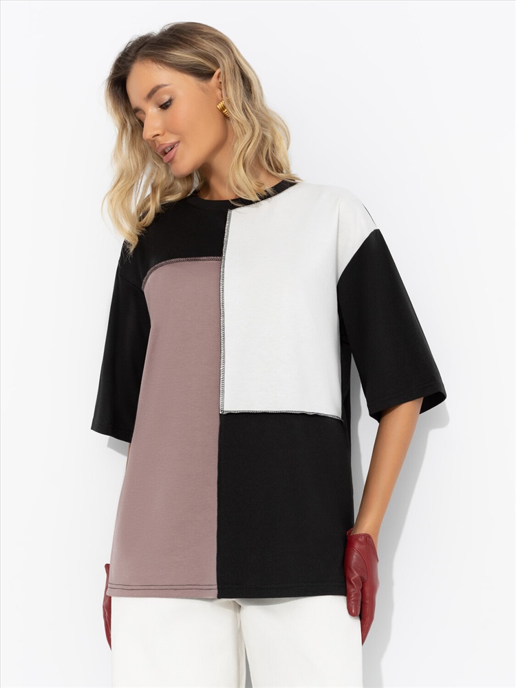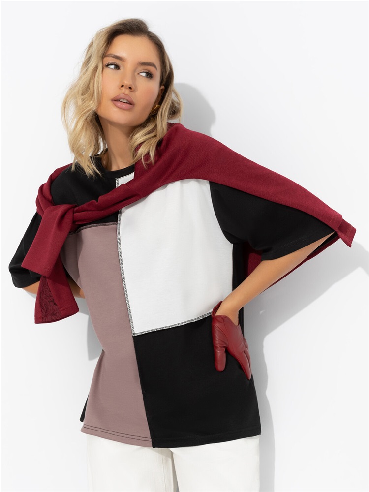 Ты живешь по своим правилам и не ищешь одобрения. Можешь дать себе все сама. В том числе футболку ЧАРУТТИ, которая подчеркнет твою уникальность. Удлиненный крой и геометричный принт, который не стирается, – метафора твоей устойчивой позиции и внутреннего стержня. Футболка свободного кроя, удлиненная. Комбинация нескольких цветов материала. По передней стороне изделия наружние швы.