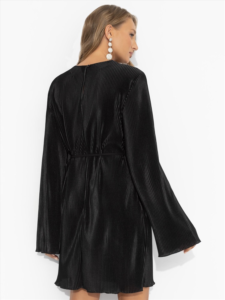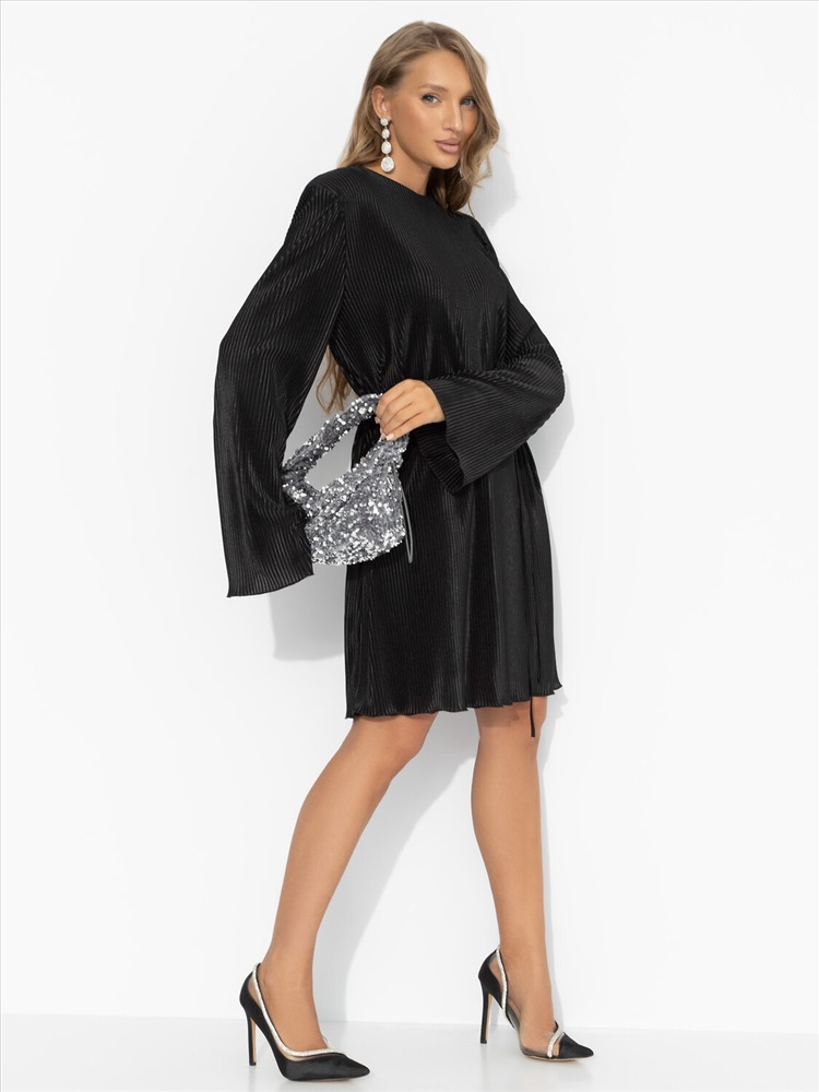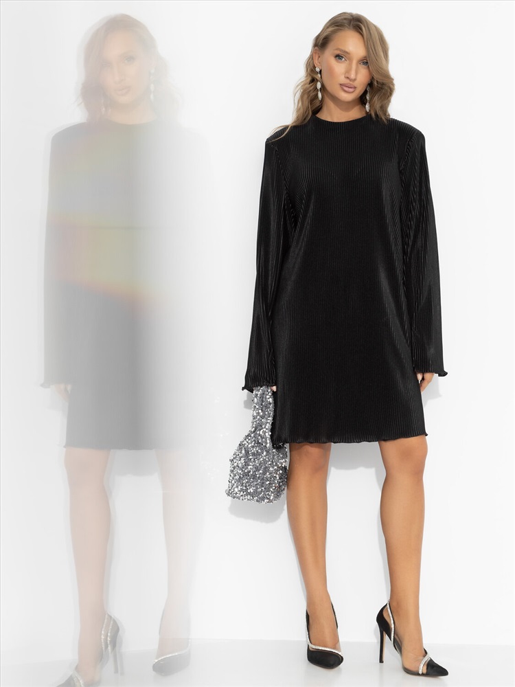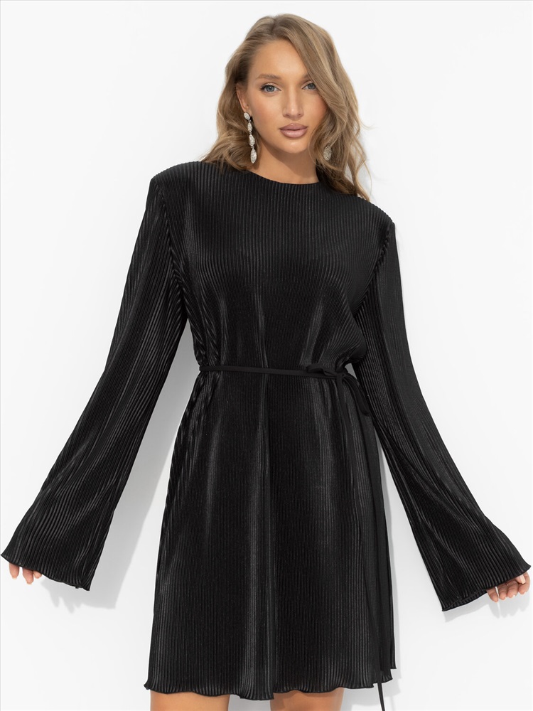 Платье-хит, в котором легко потерять счёт времени – и заставить других потерять голову. Она кружится в потоке мгновений – и всё внимание принадлежит ей. Свободный силуэт с поясом тонко подчёркивает талию и уверенность. Мягкий трикотаж «гофре» струится, переливается при каждом движении, подчеркивает осанку и уверенность. Платье со свободными рукавами на подплечниках.