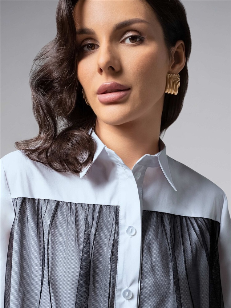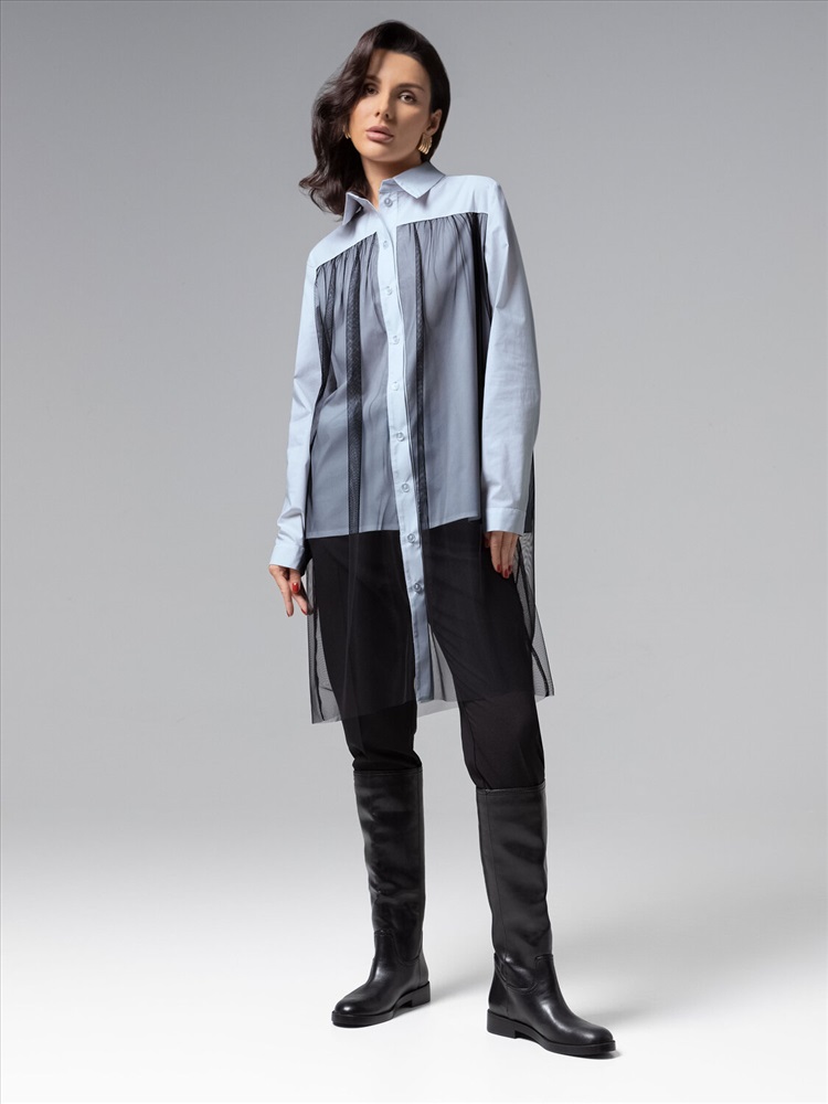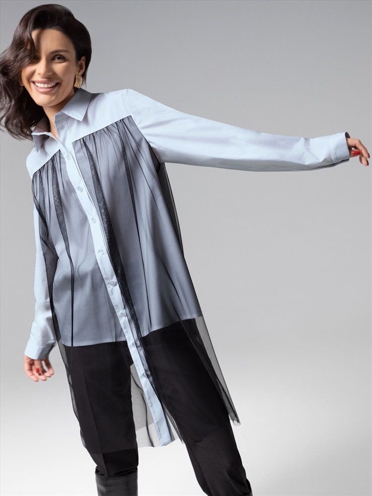 Выглядеть модно и роскошно – прерогатива самых смелых. Рубашка акцентного кроя из коллекции ПРЕМИУМ вызывает неподдельный восторг. Комбинация рубашки из премиального хлопка и тончайшей сетки создана дизайнерами ЧАРУТТИ как изделие высокого класса. Безупречные лекала и акцентный дизайн. Не упускайте возможность впечатлять. Рубашка классического силуэта с верхним удлиненным слоем из сетчатой ткани. Сетка прошита с двух сторон изделия.