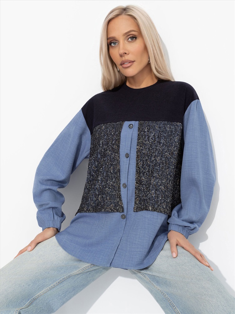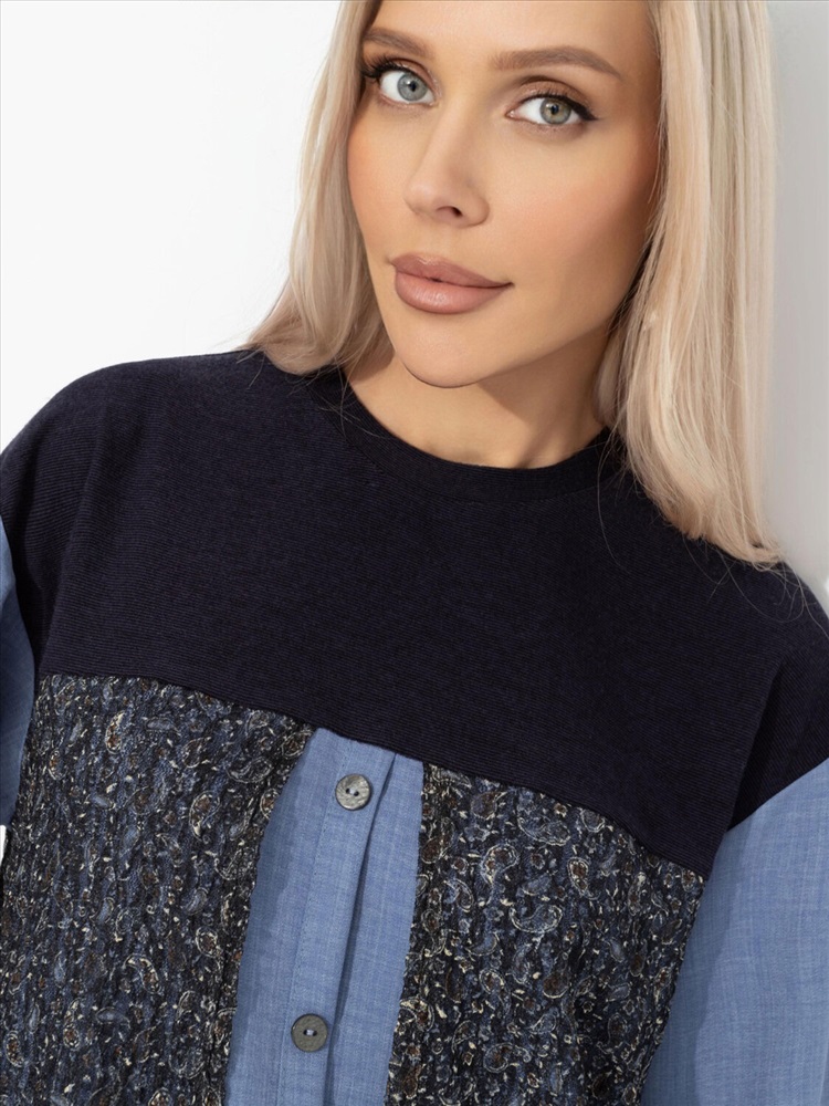 Есть повод отправить свое фото в редакцию европейских модных журналов. Пусть там знают наших. Свитшот от ЧАРУТТИ выглядит максимально стильно и полностью выстраивает образ. Необычный look среди обыденных восхищенных взглядов, к которым ты привыкла. Свитшот прямого кроя. Комбинация нескольких видов ткани. Пуговицы по передней части изделия. Рукава оформлены скрытыми резинками.