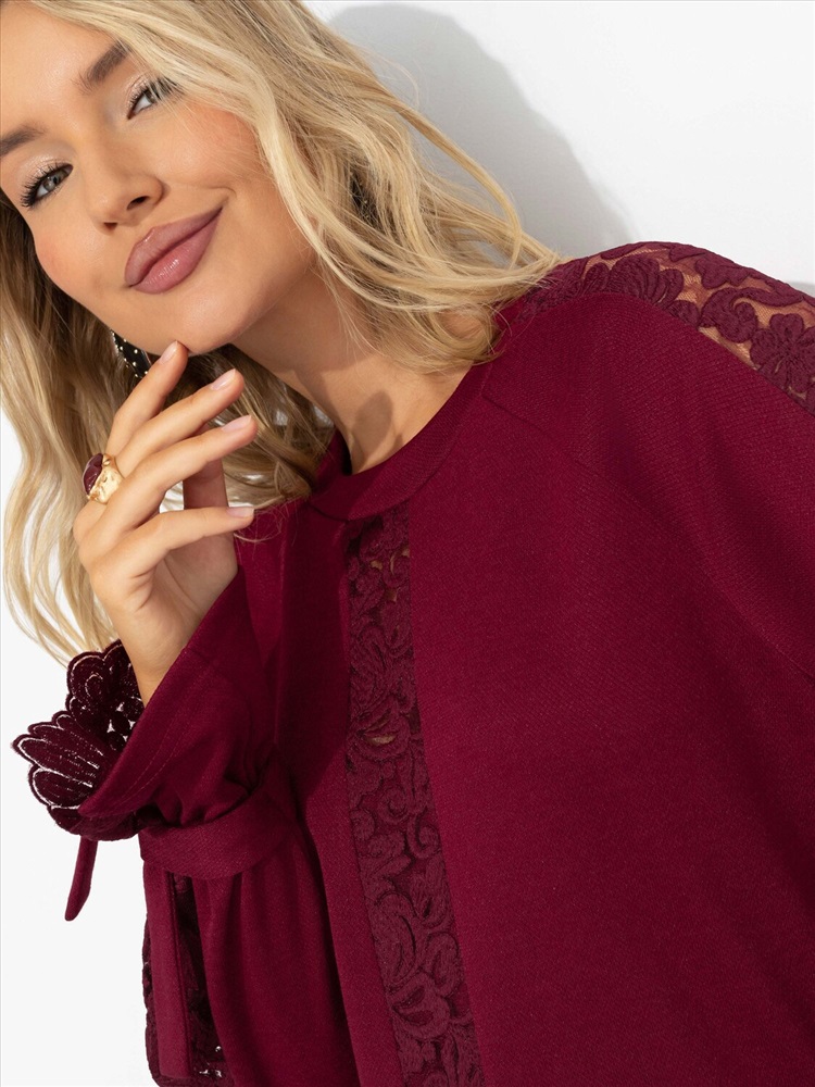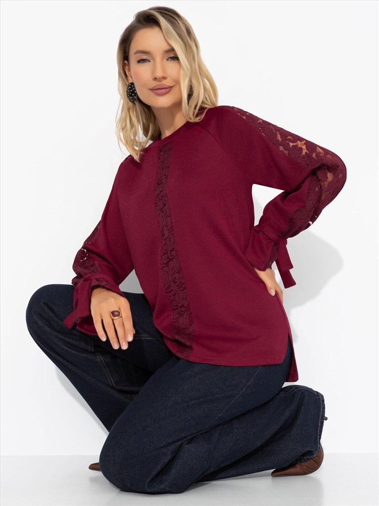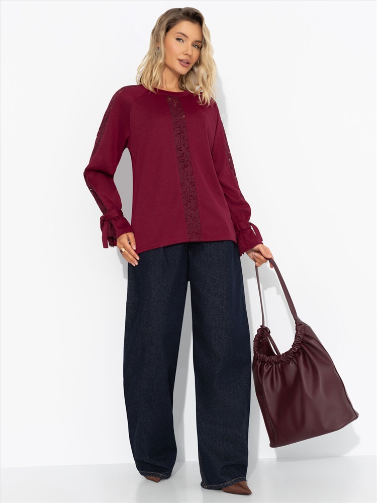 Свитшот ЧАРУТТИ чувствуется буквально как пропуск в круг душевных людей. Его винный цвет, комбинация фактур и детали располагают к себе с первой же минуты. Абсолютный комфорт обеспечен. Свитшот свободного силуэта. Акцентные вставки из кружева в тон основного материал. Завязки на рукавах.