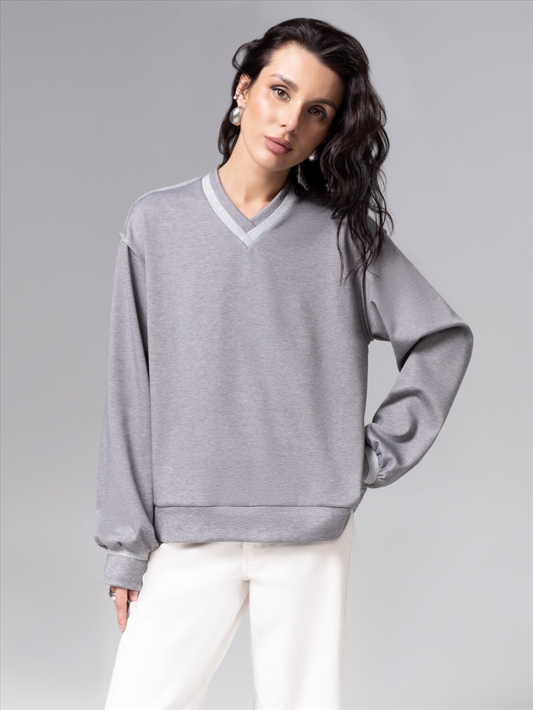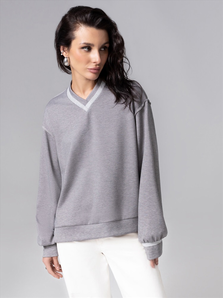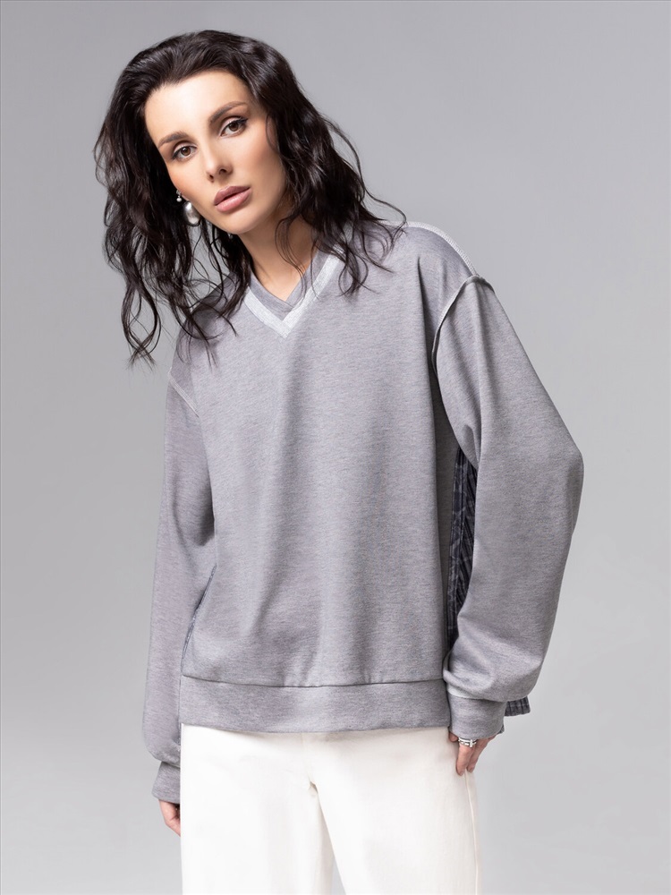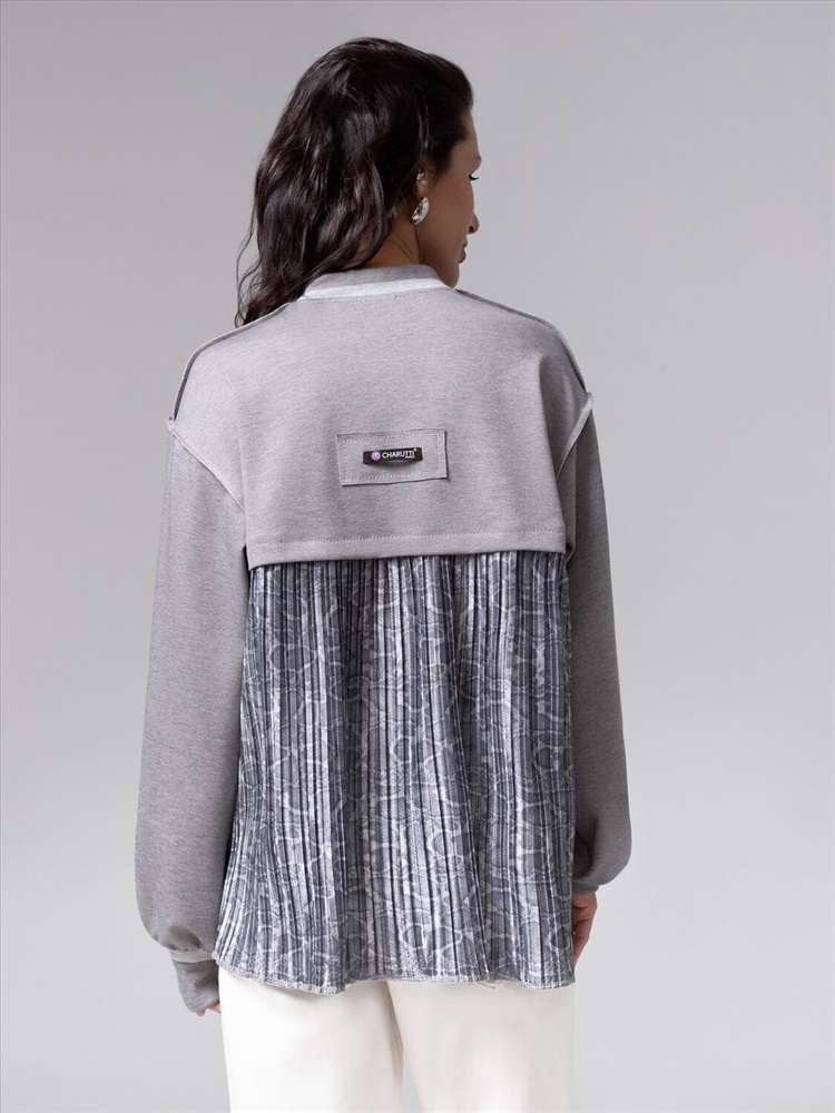 Минимум цвета, максимум характера. Серый свитшот со швами наружу доказывает: уверенность не нуждается в украшениях. Всё просто – «Успех в руках». Свитшот ЧАРУТТИ олицетворяет современную интерпретацию непринужденной элегантности. Его стильный крой, сочетающий объемность с четко выверенными пропорциями, обеспечивает идеальную посадку на любую фигуру. Акцентный крой спинки изделия из контрастной ткани-плиссе.