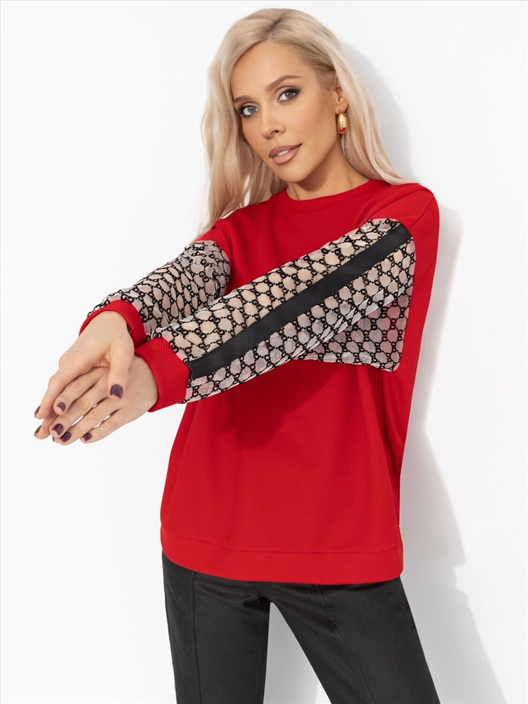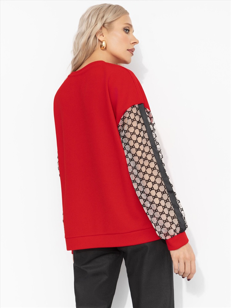 Свитшот ЧАРУТТИ насыщенного красного цвета – тот самый идеальный подарок, о котором ты сама мечтаешь. Его силуэт дарит ощущение безусловного уюта, в котором можно спрятаться от всего мира. Яркий, жизнеутверждающий оттенок поднимает настроение даже в самый хмурый день, заряжая энергией и уверенностью. В нём сочетается непринуждённая расслабленность и яркий акцент, делающий даже простой образ стильным и запоминающимся. Свитшот свободного кроя. Изделие удлиненное. Рукава декорированы акцентной тканью с текстурным узором и лампасами.
