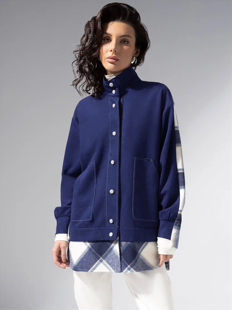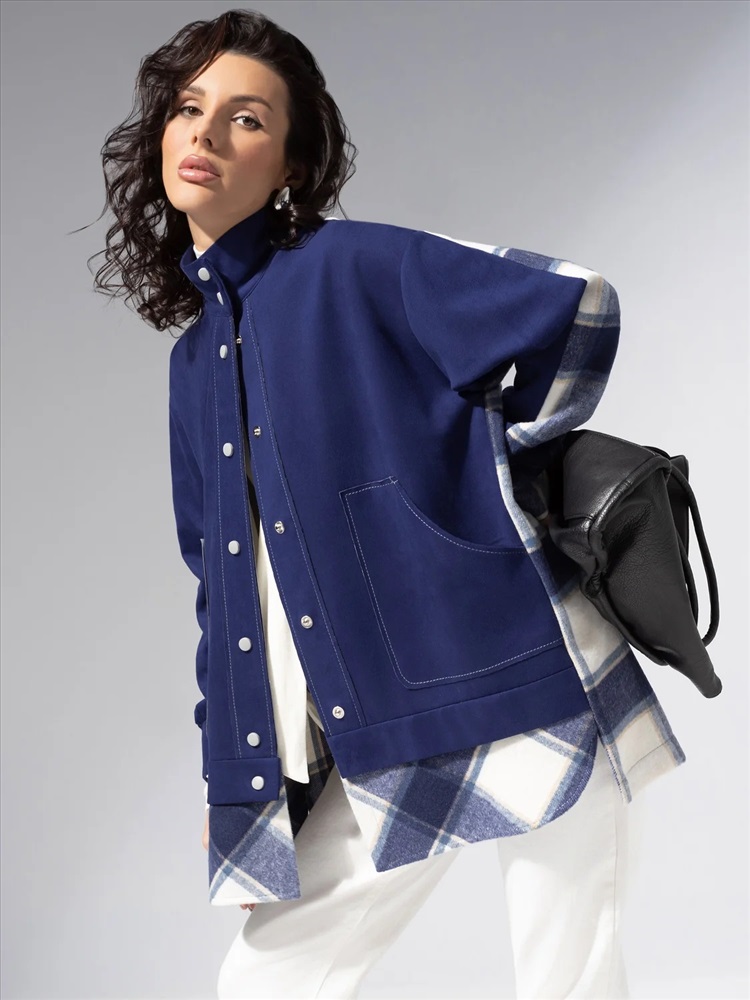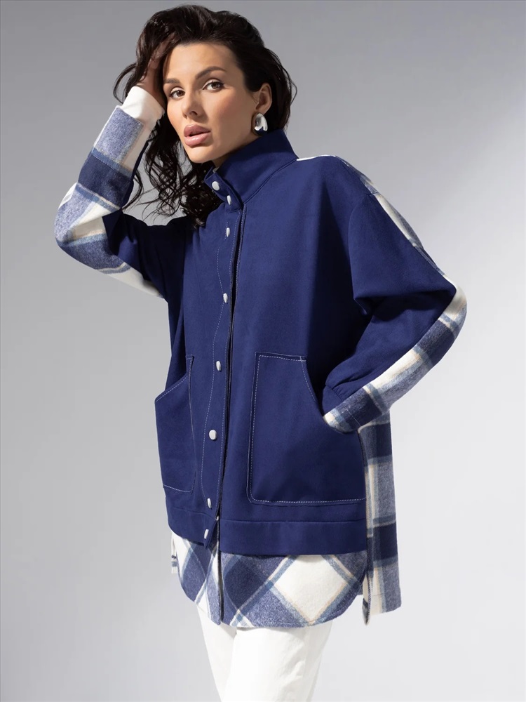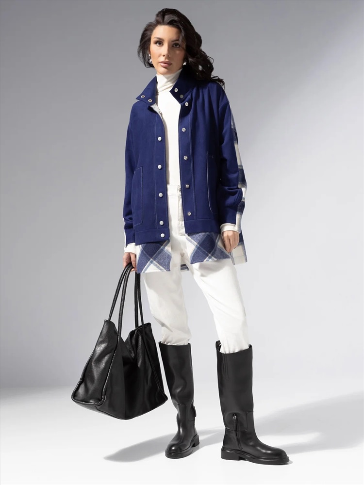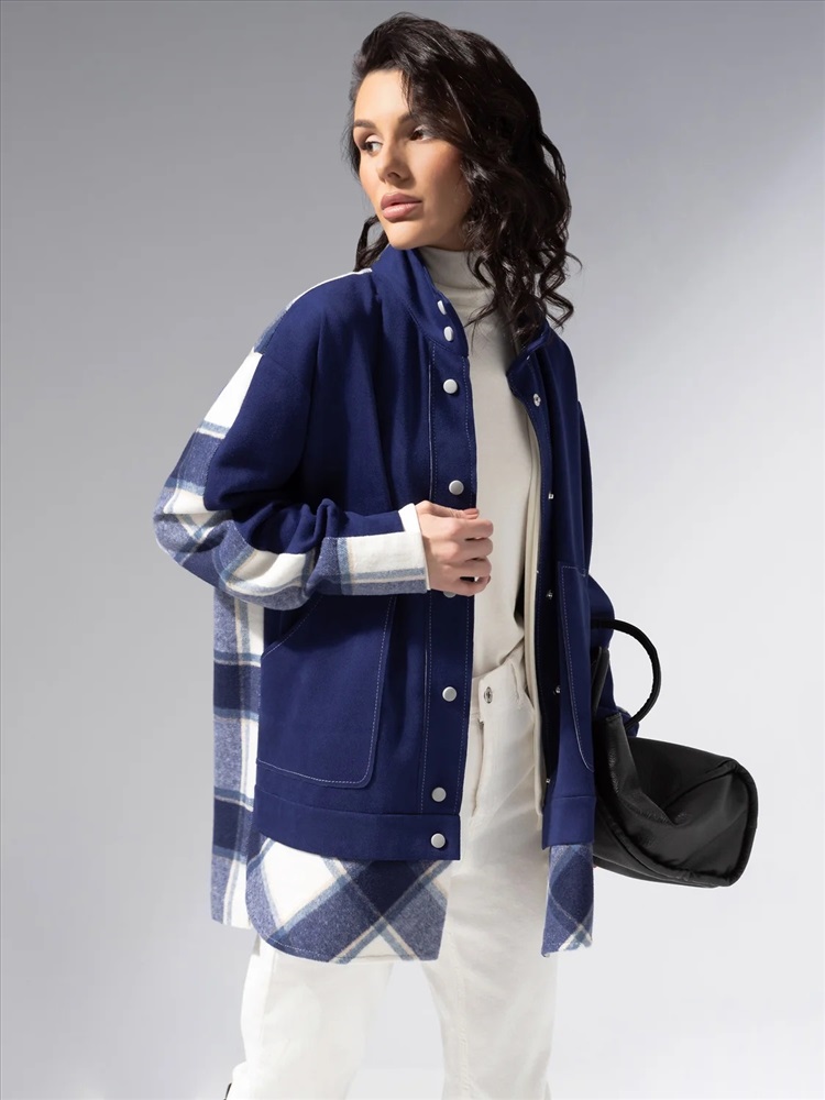 Комбинированная модель из мягкой экозамши и пальтовой фланели. Прямой силуэт, удобные карманы, контрастная отделка швов. Легко комбинируется с денимом и базовыми брюками.