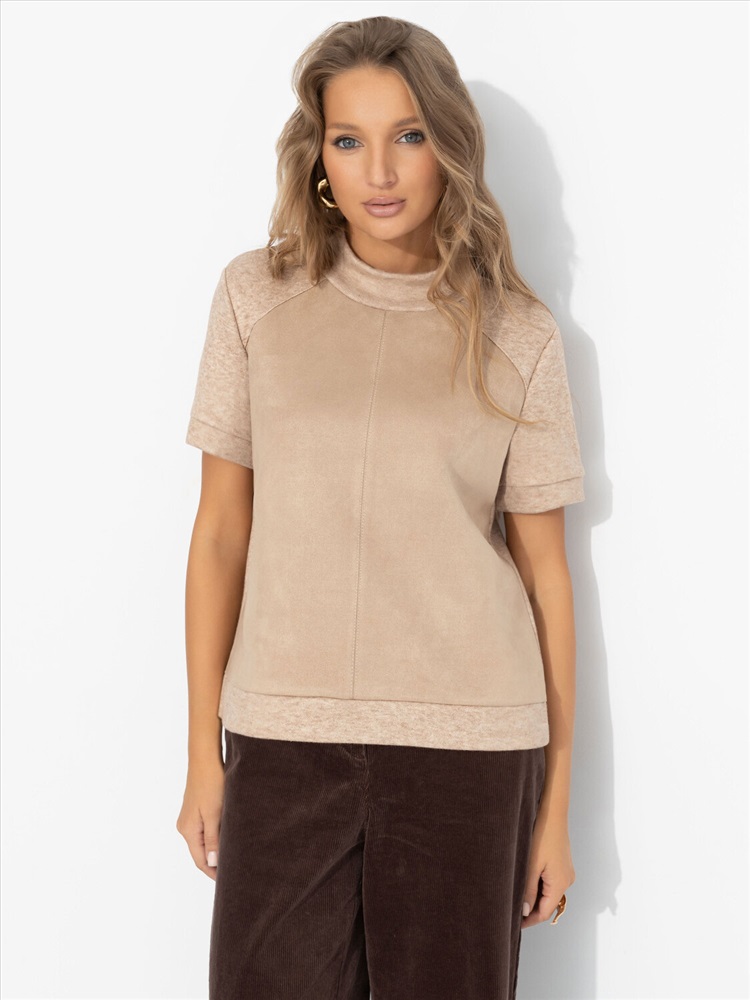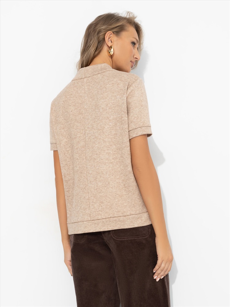 Межсезонняя классика – джемпер в стиле «уютный урбан». Плотный, но легкий трикотаж, уютный воротник и короткие рукава – для кофе с подругой и рабочего дня, когда важен комфорт без скуки. Беж и мягкая фактура делают образ расслабленным, а релакс – это именно то, что нам нужно в холодный сезон. Джемпер свободного кроя. Не требует сложного ухода, подходит для образов на каждый день.