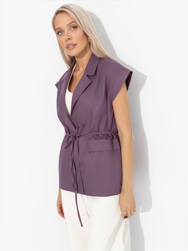 Жилет ЧАРУТТИ цвета Future Dusk стал её талисманом. В его строгих линиях и мягкой ткани живет её мечта — быть сильной, но оставаться нежной. Каждый день, надевая его, она чувствует уверенность для смелых шагов и телефонных звонков незнакомым людям. Жилет в деловом стиле удлиненный. Изделие с лацканами. Удлиненна линия плеча с отворотами. Отвороты прошиты. Имитация карманов. Есть тонкий пояс в комплекте. Жилет застегивается на пуговицу.
