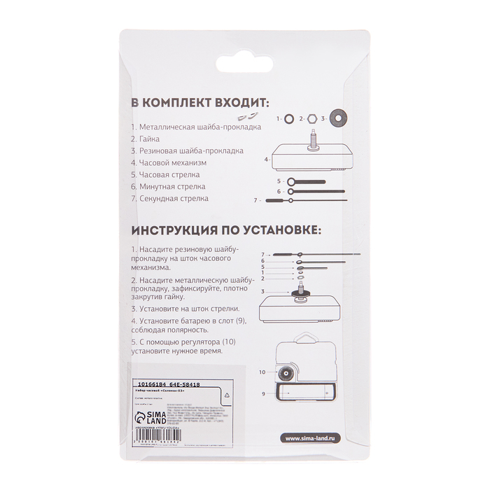 Производитель: Соломон Габариты: 18 x 10,5 x 3,5 Страна: Китай В боксе: 100 набор Состав: Металл, пластик Материалы: металл, пластик Фасовка: по 1 набор Индивидуальная упаковка: Блистер Сертификат: Не подлежит сертификации Длина штока, мм: 16 Длина часовой стрелки, мм: 68 Длина минутной стрелки, мм: 90 Длина секундной стрелки, мм: 92 Материал: Пластик Подсветка: Нет Ход стрелок: Плавный