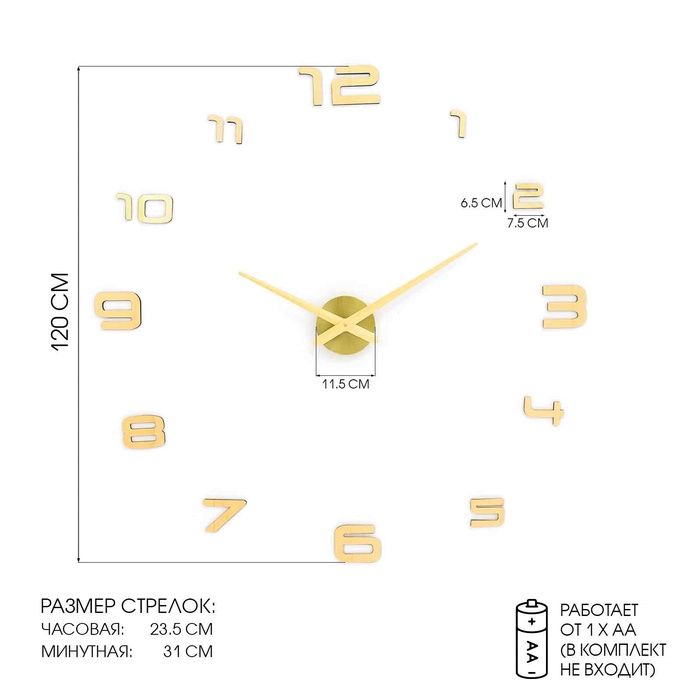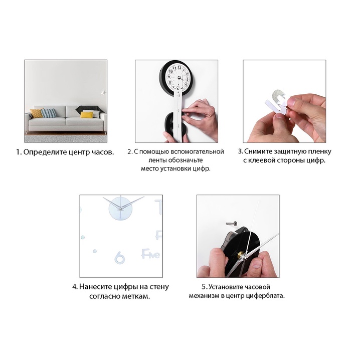 Часовая: 37.5 см. Создавайте часы в собственном стиле, проявляйте изобретательность и креативность. Не обязательно располагать числа по кругу — придайте аксессуару необычную форму, поменяйте диаметр циферблата, используйте не все элементы. Комплектующие легко клеятся на стену и без труда снимаются, поэтому смело воплощайте идеи в жизнь! У вас всегда будет возможность отсоединить детали и сделать всё заново. Комментарии к товару