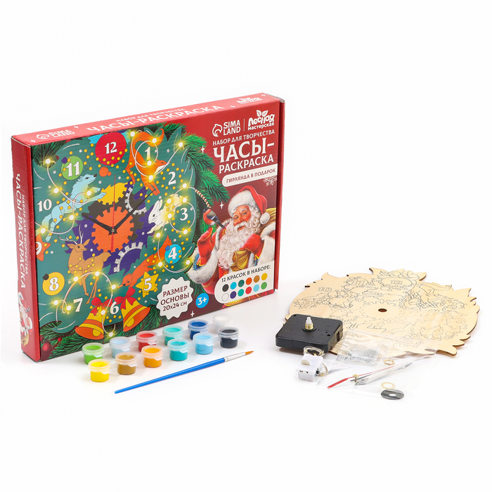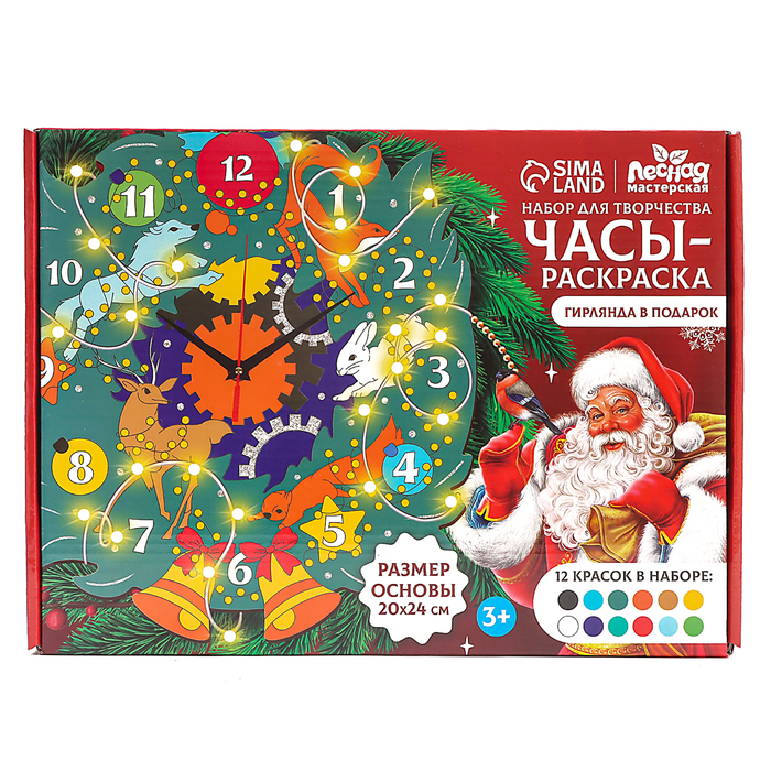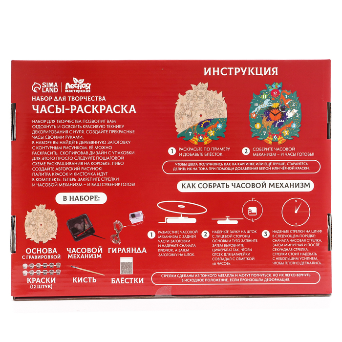 Габариты: 30 x 22 x 3,5 Страна: Китай В боксе: 54 набор Состав: Акрил, дерево, картон, металл, пластик Материалы: акрил, дерево, картон, металл, пластик Фасовка: по 1 набор Индивидуальная упаковка: Цветная картонная коробка Габариты товара: 30 см × 22 см × 3,5 см Сертификат: ЕАС Количество цветов: 12 Для кого: Унисекс Размер, см: 24 х 20 Возраст: От 3 лет Тематика: Новогодняя Символ года: Нет Тематика праздника: Новый год Адресат: Без адресата Возраст: Любой Материал: Дерево Вид: По дереву Составляющие набора: Товары для творчества Техника выполнения: Роспись, раскраска Вид заготовки: Часы Комплектация набора: С блёстками, С кистью (-ями), С красками С набором для росписи по дереву вы сможете создать яркие и оригинальные часы. Особенности набора