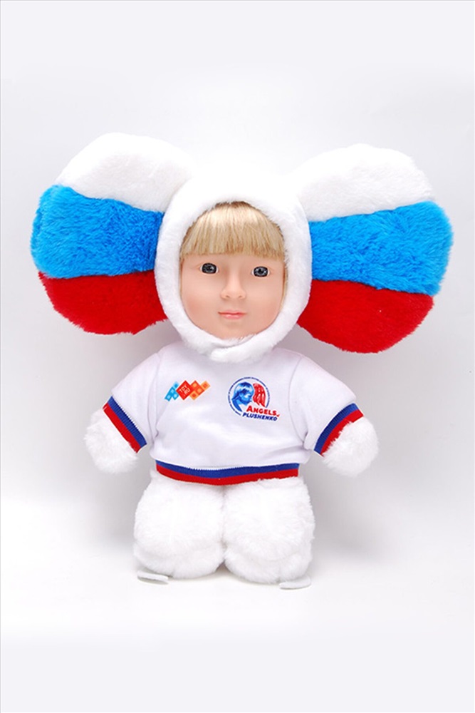 ID товара: 266951 Сезон: Осень/Зима Возраст: 4+ Развлекательные игры: Активные Страна бренда: Россия Страна производства: Россия Мягконабивная игрушка в образе Саши Плющенко с белыми волосами и пластмассовым лицом. На голове игрушки большие уши чебурашки в цвет российского флага, на мягком туловище надета спортивная белая футболка с логотипами «Ангелы Плющенко». Комментарии к товару