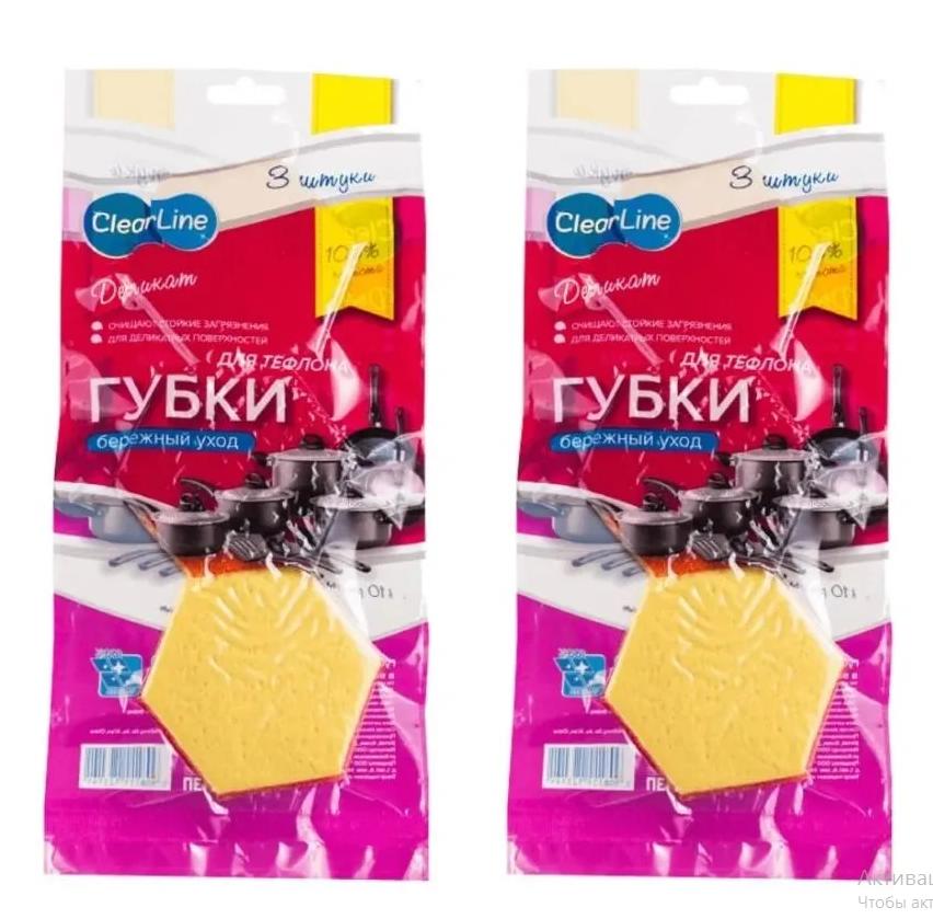 Вес уп.(гр) ~: 15 Clear Line Губки деликатные для тефлона 3 шт/уп Двусторонние губки не царапают поверхность, идеально подходят для тефлона, керамики, эмали и прочих изделий, требующих бережного и деликатного ухода. Удаляют даже сильные загрязнения. Высококачественное сырье, имеющее крупнопористую структуру, увеличивает срок службы губки в 5 раз.