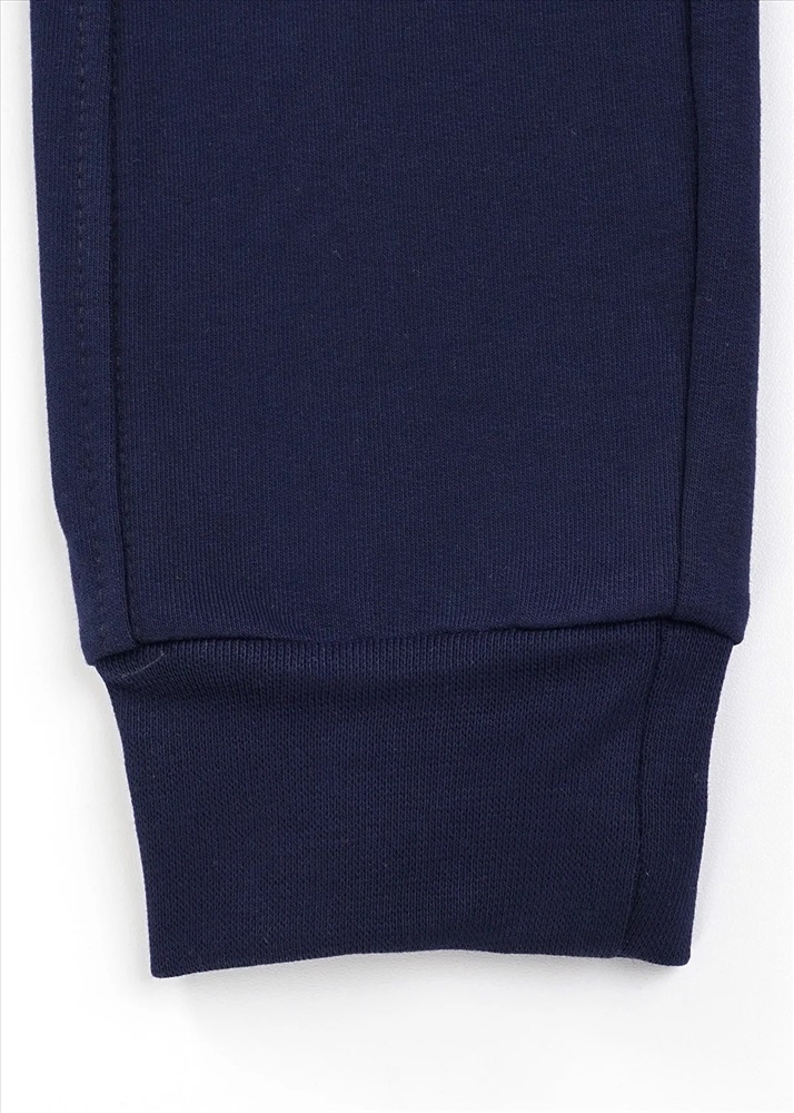 Базовые брюки без карманов, по низу удобные манжеты из кашкорсе. Модель из футера с лайкрой. Пояс регулируется шнуром.
