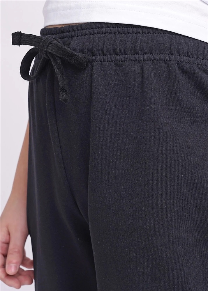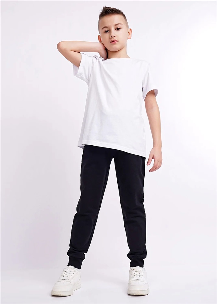 Базовые брюки из хлопкового футера. В поясе для удобства продет шнур, цельнокроенность модели зрительно вытягивает фигуру. Низ очень удобный за счет эластичных манжет.