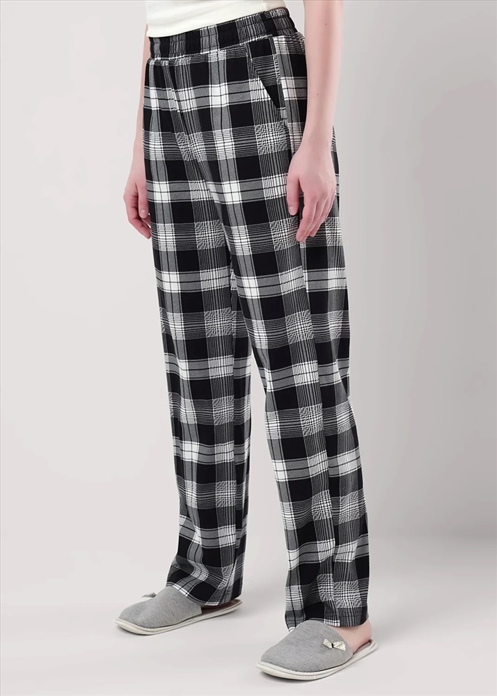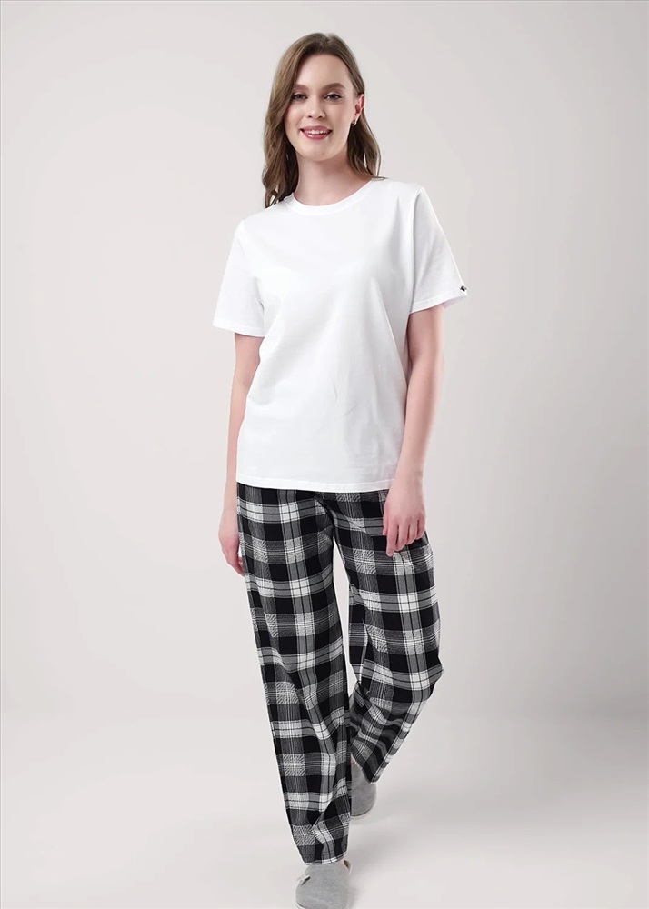 Брюки прямые для дома из хлопкового трикотажного полотна. Пояс на внутренней резинке, боковые карманы с отрезным бочком.