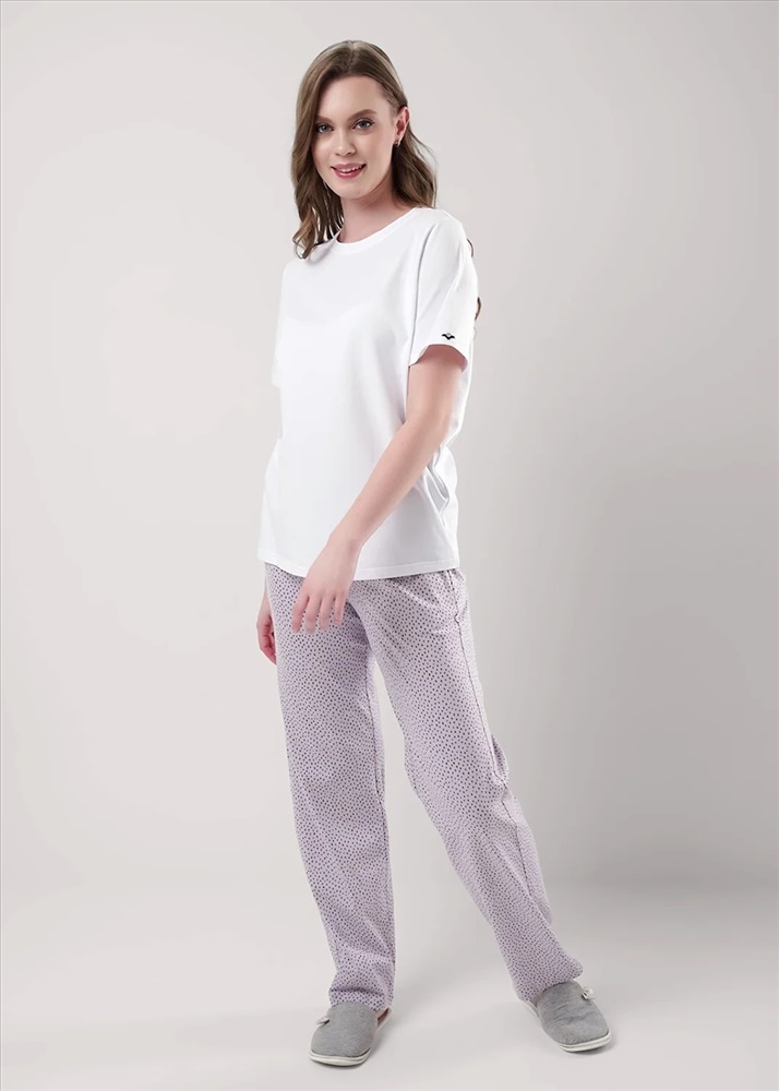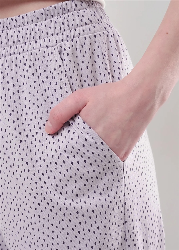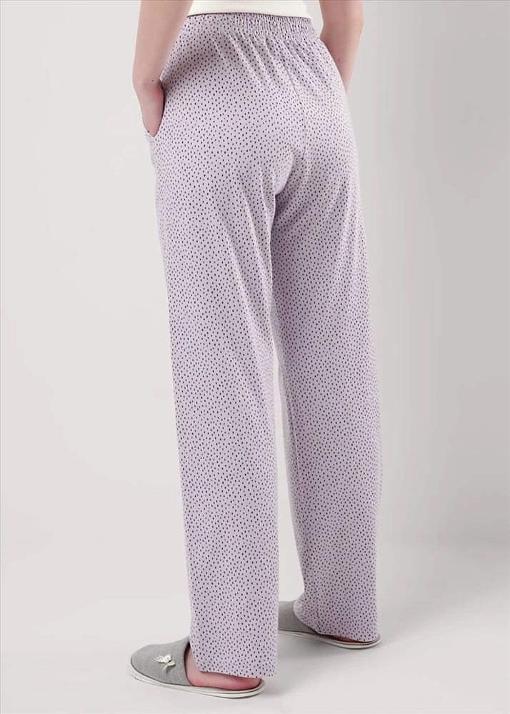 Брюки прямые для дома из хлопкового трикотажного полотна. Пояс на внутренней резинке, боковые карманы с отрезным бочком.